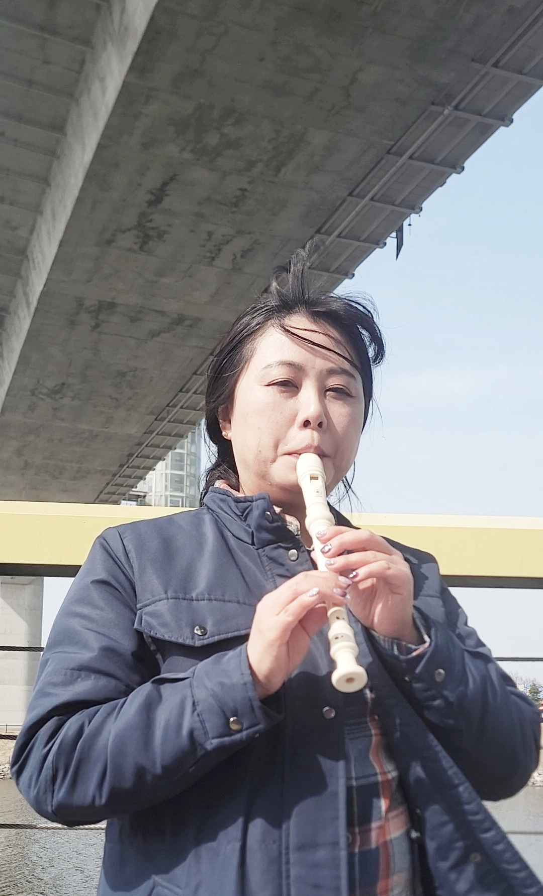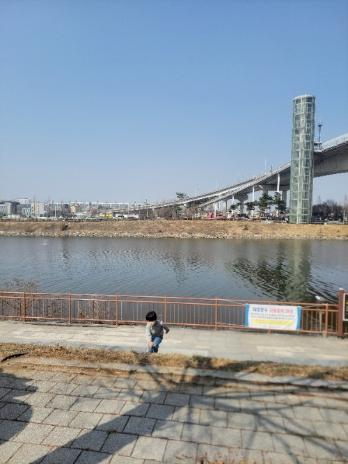 지금은 마스크 의무 기간이 아니지만 학교를 포함한 주위 전체가 고층 아파트로 포화된 환경에서 고음의 소음을 일으킬 수 있는 리코더를 도시락처럼 싸들고 아라뱃길에 와서 불었어요.