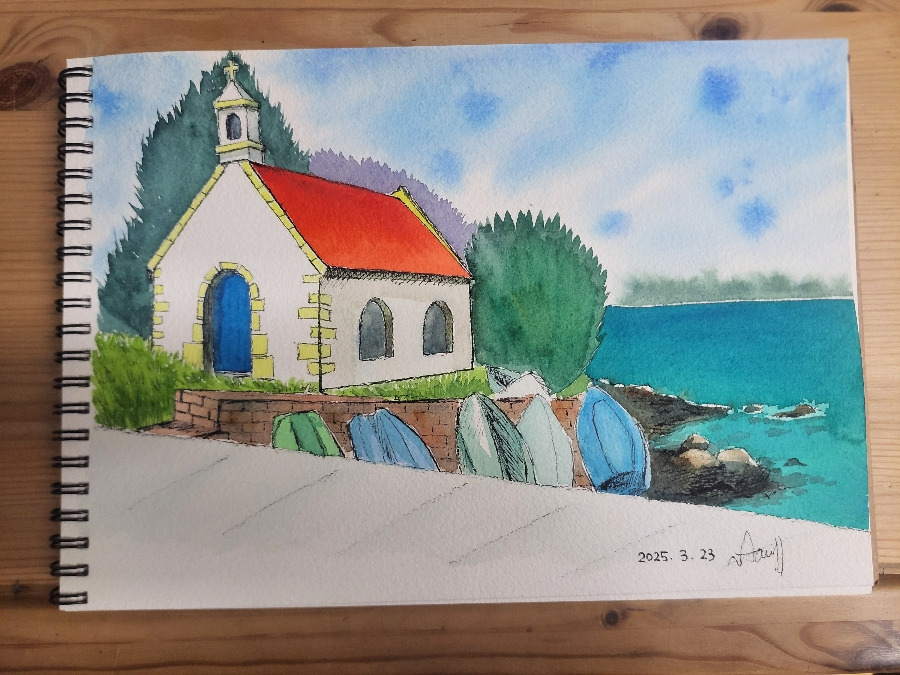 그리고 저녁을 먹은 뒤 어반스케치 '채색 숙제'를 끝냈으니 여러모로 아주 숙제를 잘 해낸 날이네요~