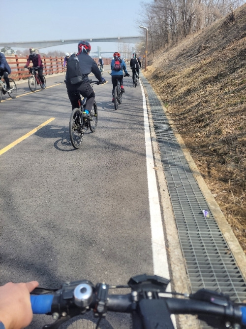 게다가 햇볕 한창인 1시쯤에 출발한 거라 두꺼운 외투 차림은 너무 더웠어요. 도중에 잠바까지 바구니에 모두 싣고 갔죠. 그래도 도착하니 강바람이 차서 유용했어요.
