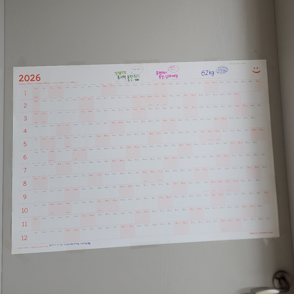 이것은 나의 2026년 꿈을 다 이루라며 이웃이 선물 준 대형 캘린더다.