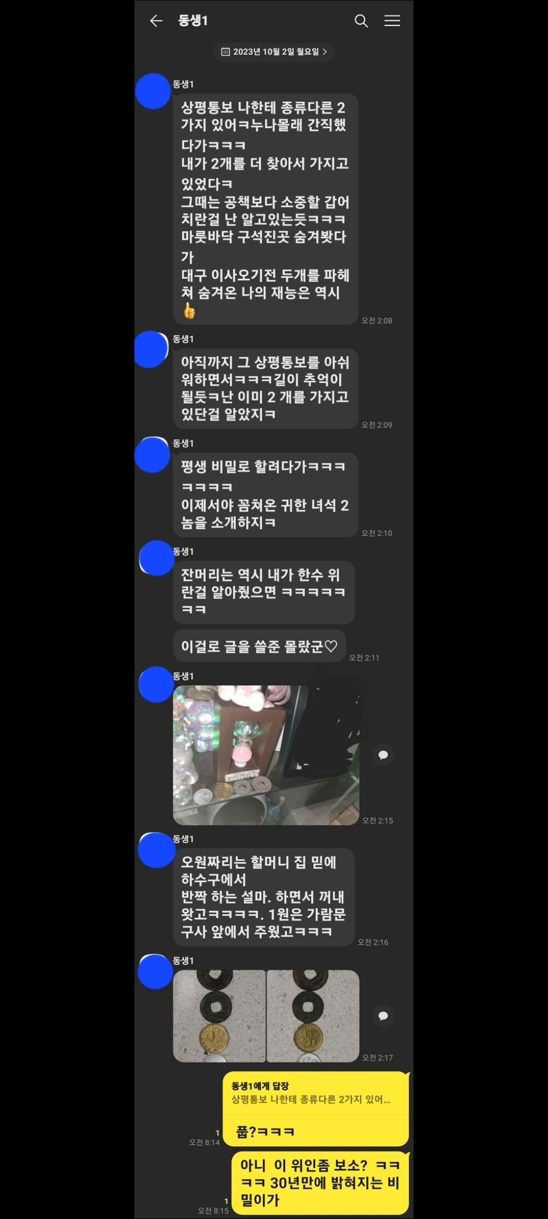 그런데.. 상태 나쁜 주화는 별로 값어치가 없다고 하던데... 그당시 공책 2권이면 값을 많이 매겨주신건가? 이제와서 궁금하다...ㅎㅎ