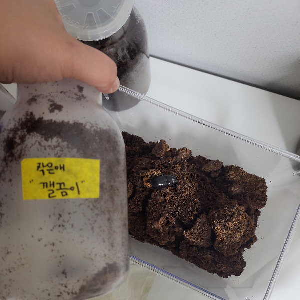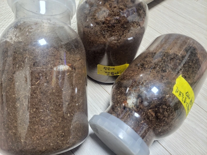 녀석들을 1마리당 1통을 차지하며 발효톱밥을 부지런히 먹어치웠습니다.