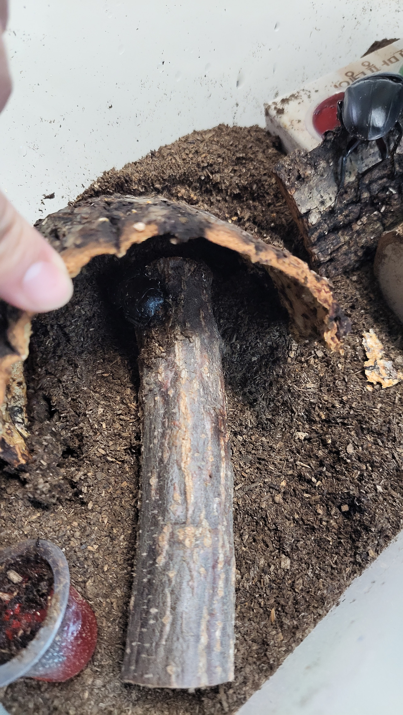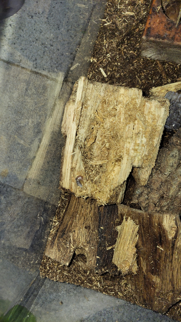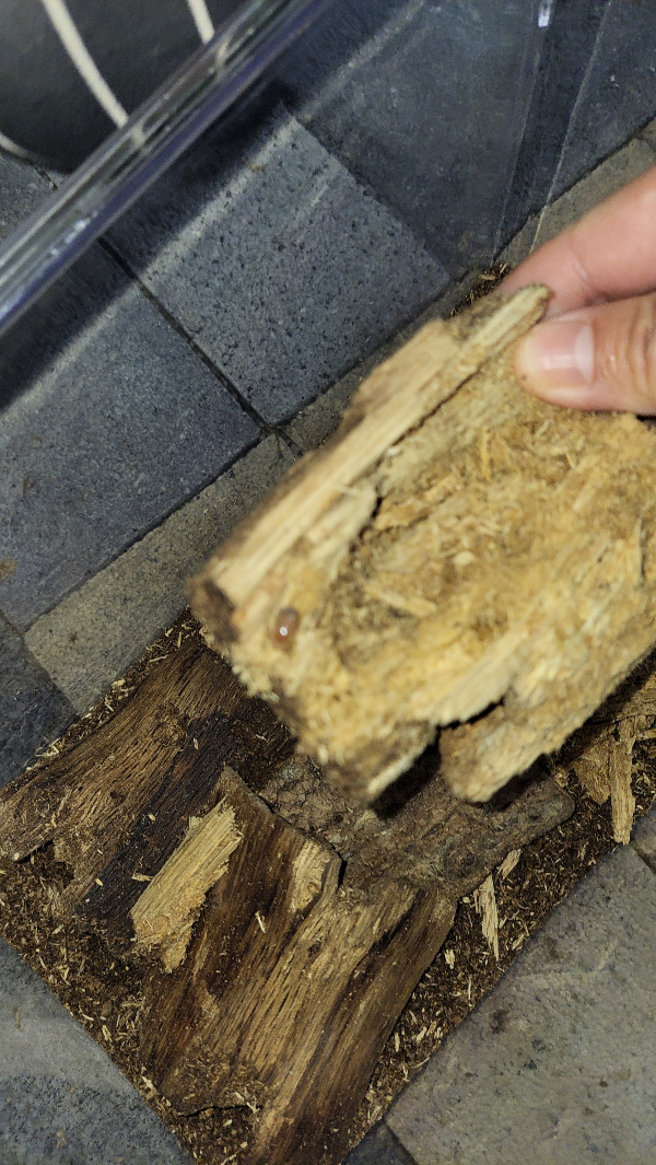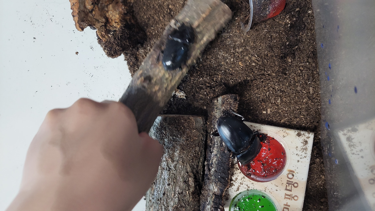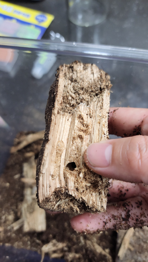 암컷들은 젤리는 적게 먹고 어느 순간부터 산란목(썩은 나무둥치)에 계속 갉아 알 낳을 구멍을 만들었어요.