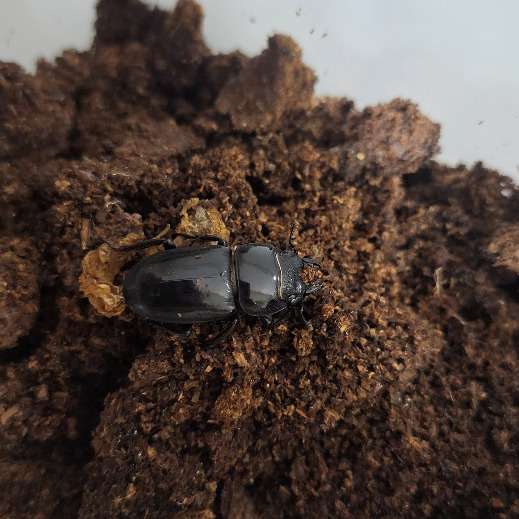 넓적사슴벌레 성충 수컷 1마리 (6~6.9cm)와 암컷 2마리(3.4~3.7cm)입니다.