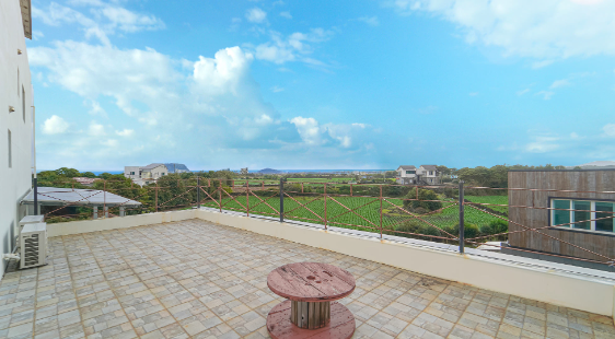 해변과 오름이 가깝다. 숙소 뒤편에 난 예쁜 마을길을 통하면 도보로 7분 정도에 종달해변이 있다. 짐을 들고 충분히 걸어 다닐 수 있는 거리다. 펜션 바로 앞에 오름 입구가 있어서 산책하기 좋다. 왕복 20분 정도 되는 평지 숲길이다(유모차는 갈 수 없다).