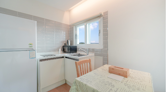 수납공간이 충분하다. 12평 원룸에서 지냈지만 불편한 점이 없었다. 수납공간이 넓어서 캐리어에 있는 옷과 짐이 모두 들어갔다. 아이 때문에 사장님이 바닥매트리스를 추가로 주셔서 깔아놓고 지냈는데, 그래도 불편함 없는 정도로 공간을 쓸 수 있었다.
