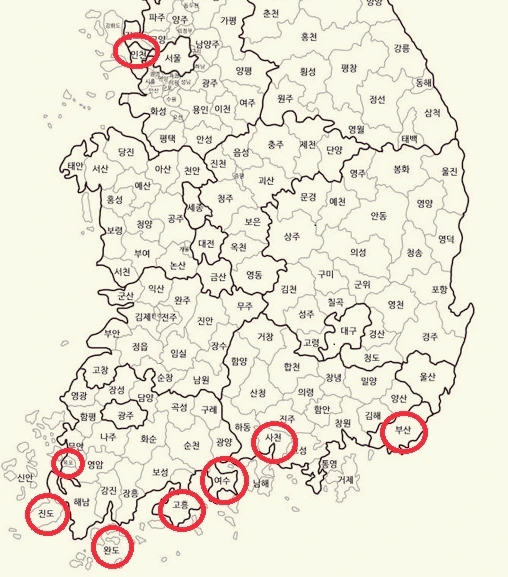 제주도에 가는 배를 탈 수 있는 곳은 8곳이 있다.