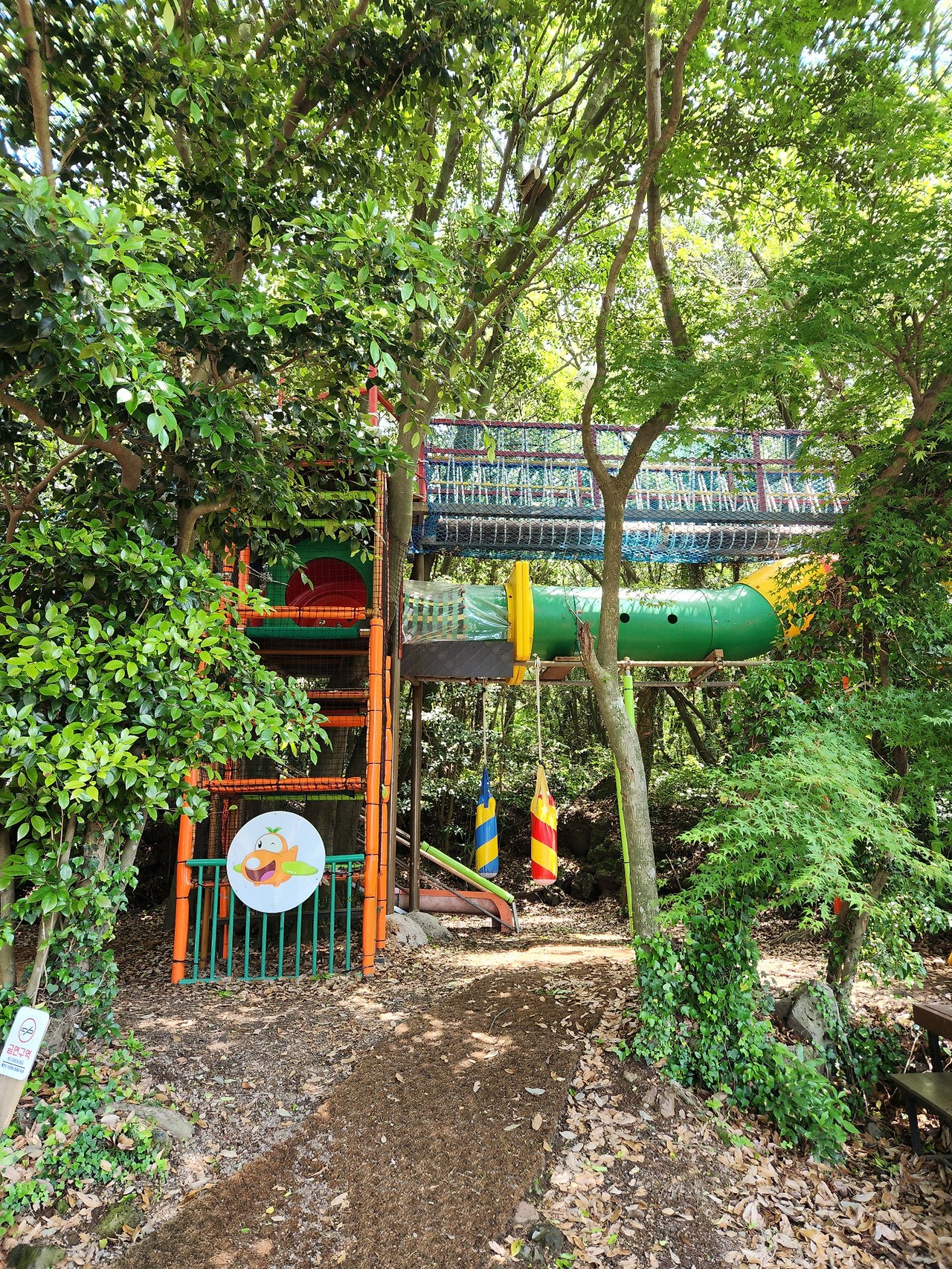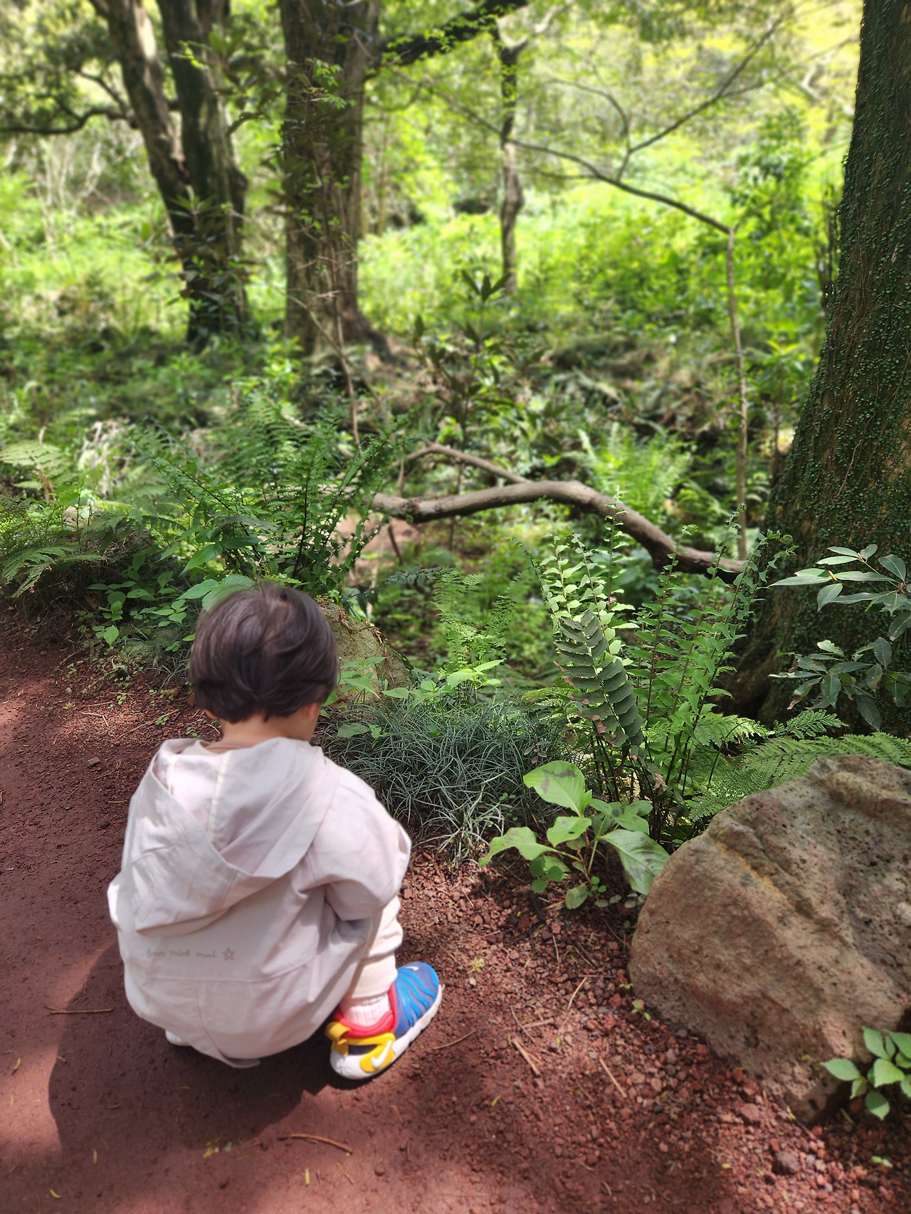 제주의 허파라고 하는 원시림, 자연이 만들어 낸 곶자왈의 아름다움을 아이에게 보여줄 수 있다. 울창한 숲 속에서 아이의 눈이 휘둥그레졌다. 해설이 끝나고 나오는 길에 숲 속 놀이터가 있는데 아이가 정말 좋아했다. 우레탄 바닥이 아니라 낙엽이 푹신한 바닥에서 미끄럼틀 계단을 오르며 나무와 더 가까워졌다.