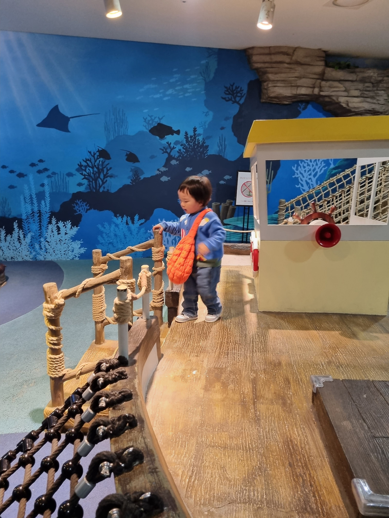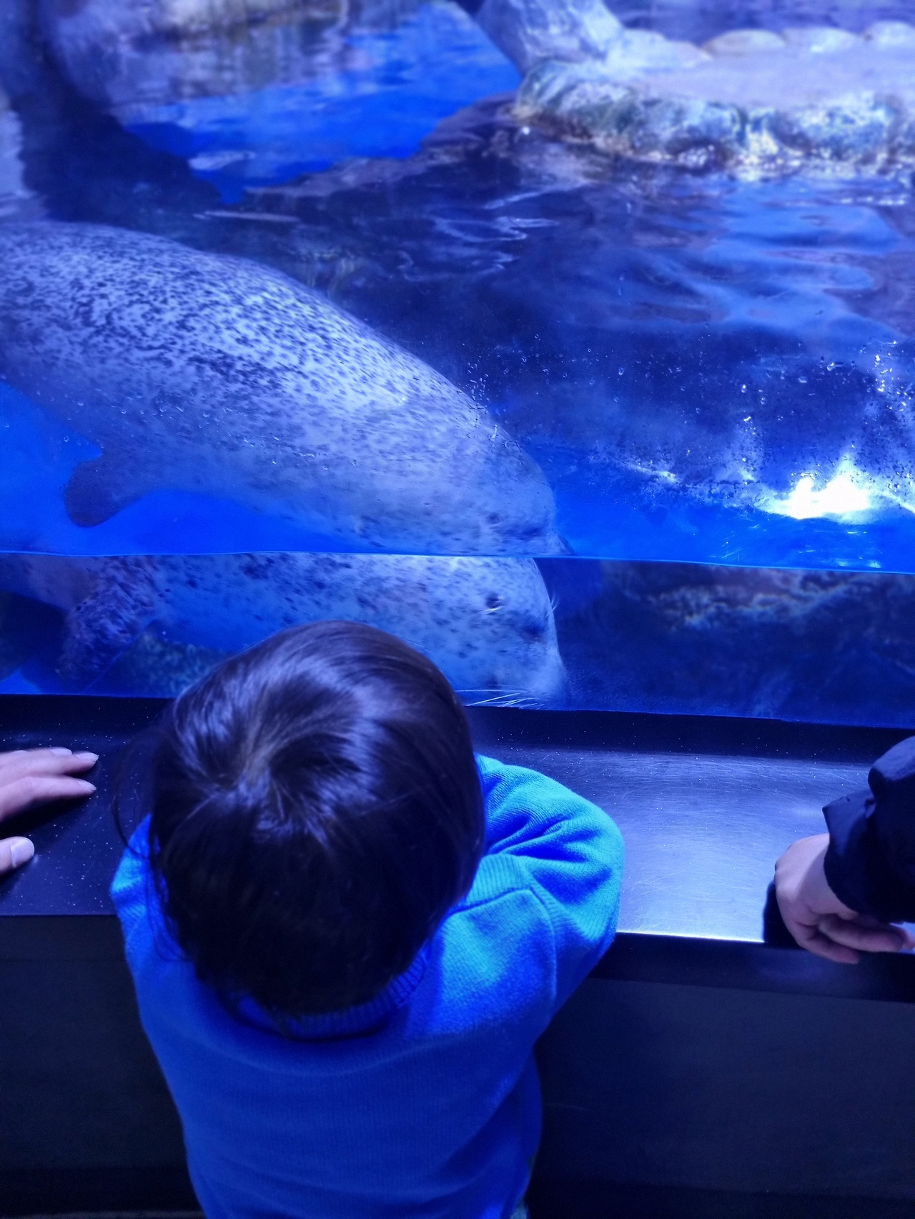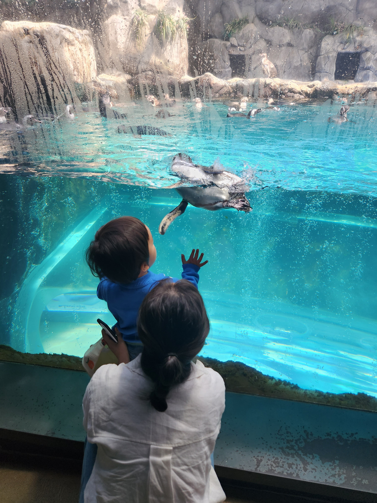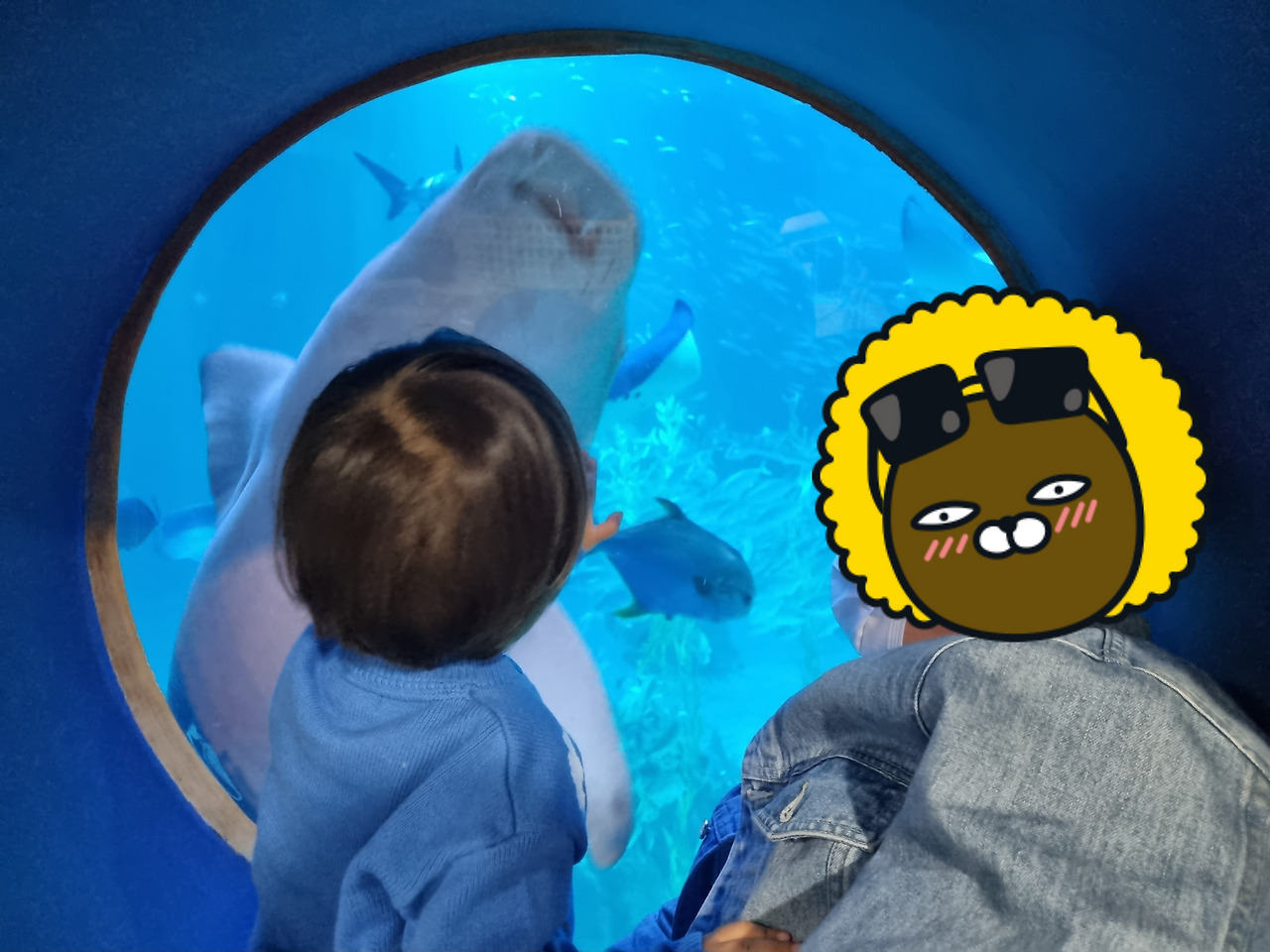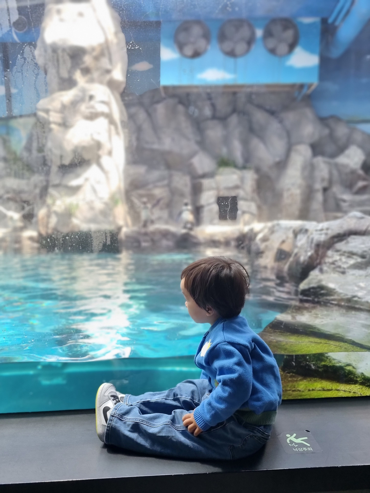 이용티켓은 아쿠아리움과 공연, 특별전시(현재 유미의 세포들)를 포함한 금액이고 무료로 이용가능한 야외산책로가 있다. 우리 가족은 미세먼지 경보가 발령된 날 방문했다. 바다가 뿌옇게 보일만큼 공기가 탁한 날이라 그런지 4월의 평일 오전임에도 불구하고 사람이 굉장히 많았다.
