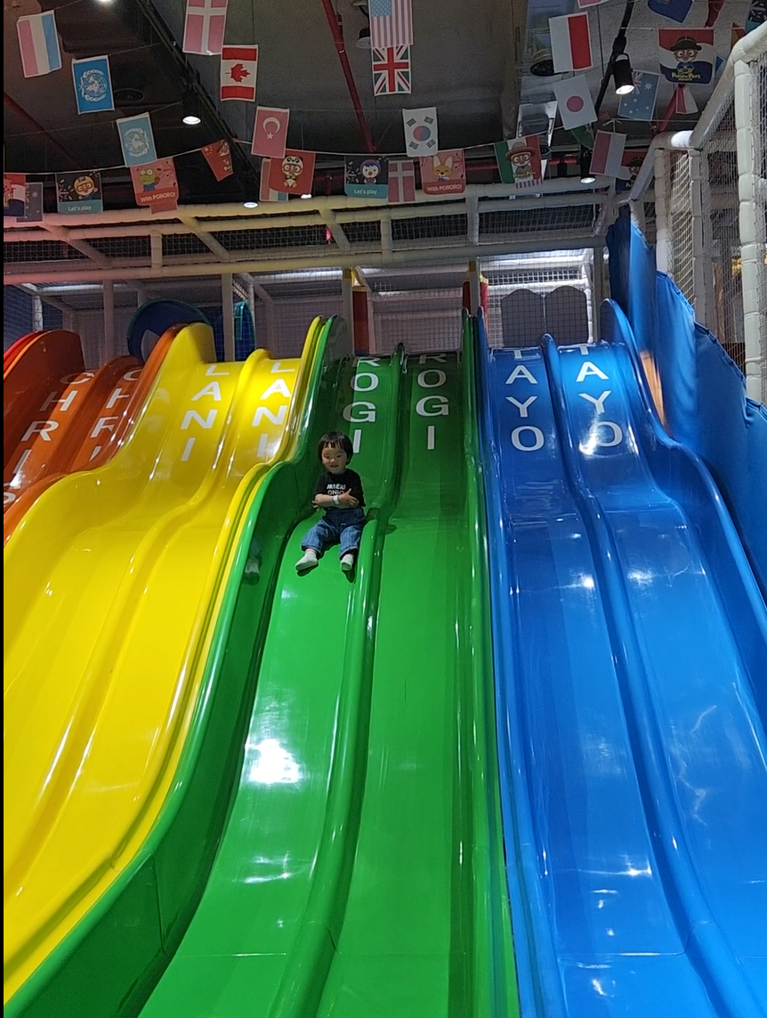 추천하는 권종은 [타요 트램펄린존 이용권] 또는 [뽀로로 파크존 이용권](성인 1.5만 아이 2.5만)이다. 이것만으로도 실내 놀이기구 3종과 공연, 키즈시설 1곳 2시간을 이용할 수 있다. 아이가 정적이거나 걸음이 서툴다면 '뽀로로파크존'에서 기차를 태워주면 된다. 아이가 활동적이라면 '트램펄린파크존'에서 뛰어놀게 하면 된다. 트램펄린이 넓게 펼쳐져 있고 아주 큰 미끄럼틀이 있다. 3인 가족이 이용권을 끊었다면 놀이기구를 인당 3개씩 탈 수 있는데, 기구마다 보호자 1명만 동반이 가능하기 때문에 실제로 아이는 6개를 탈 수 있는 셈이다.