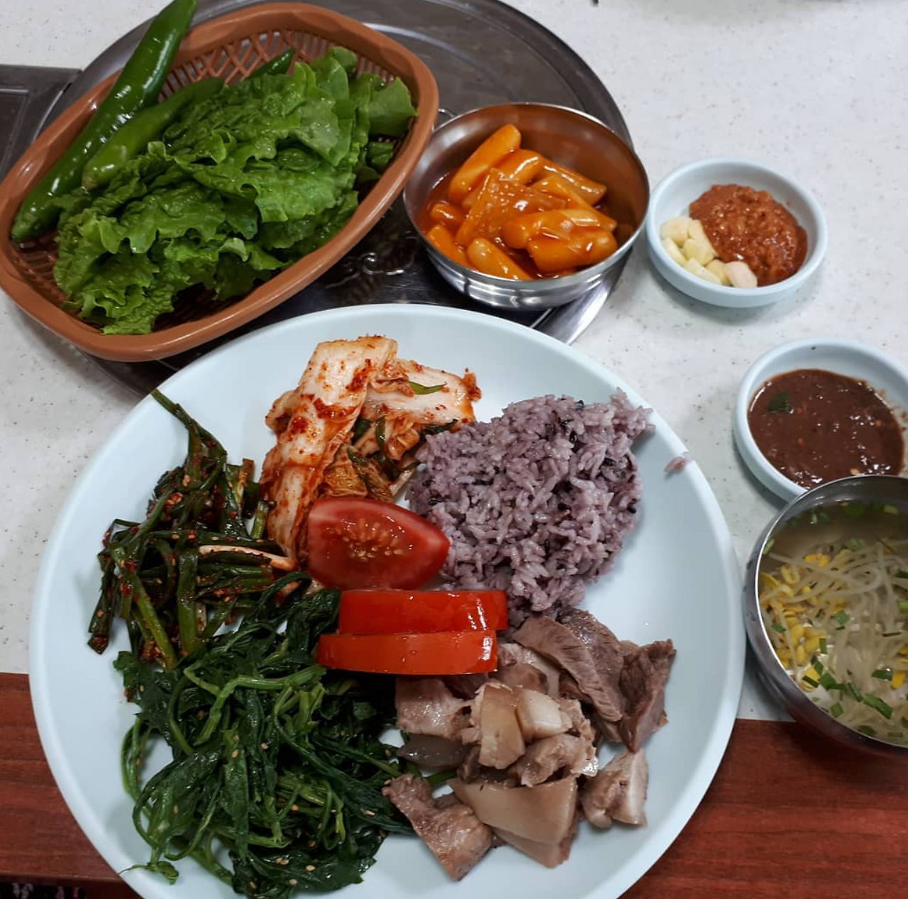 신선한 야채가 정말 많다. 질 좋은 돼지고기 수육이 있고, 카페, 찌개, 튀김 등 메뉴가 푸짐하다. 집에서 먹는 것 같은 반찬들과 김치가 일품이다.