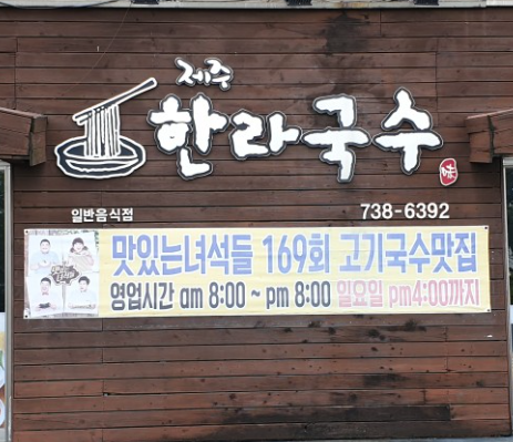 중문관광단지 근처에 있다. <맛있는 녀석들>이라는 TV프로그램에 나왔던 유명한 집이다. 대로변에 있어서 주차도 도로 공용주차장에 해야 한다. 그래서 주차대수가 많지 않다.
