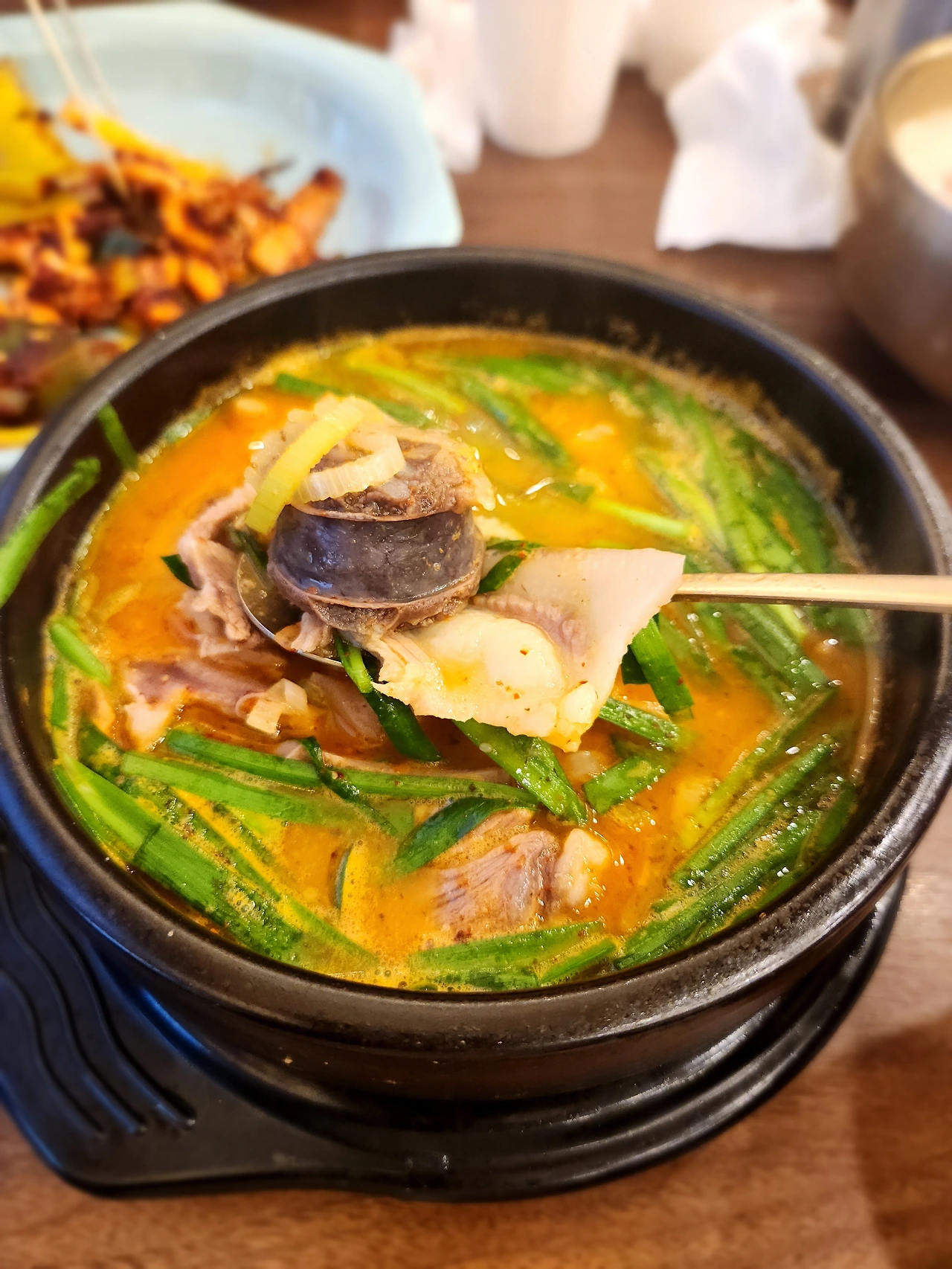국물 맛은 얼큰하다. 혀에 스며들어 미각을 자극하는 맛이다. 이것은 해장을 위해 만들어진 순댓국이 아닐까? 싶을 정도다. 거기다 지방과 고기가 적절하게 배합된 내용물은 너무 느끼하지도, 너무 부담스럽지도 않다. 어떤 목적으로 이런 국밥을 내기 시작한 것인지 모르겠으나, 우리나라를 대표하는 큰 기업들 사이에 있는 위치로 볼 때 엄청난 타겟팅이다. 술을 먹기에도, 술을 먹은 다음에도 생각난다.