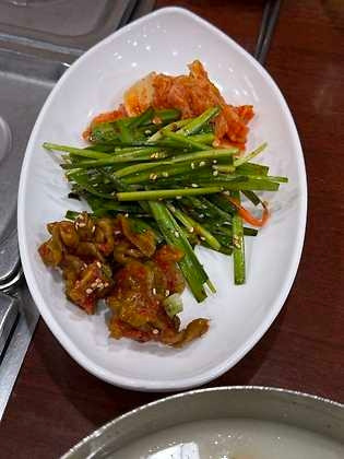 식탁 중간에 반찬통 세 개를 열면 각각 부추무침, 김치, 오이지가 있다. 세 가지 모두 특별한 맛은 아니다. 다만 신기한 것은 간이 세지 않아 자꾸 먹게 되고, 북어국물의 맛과 묘하게 궁합이 잘 맞는다는 것이다. 그래서 보통의 평범한 찬이 특별하고 유별나게 느껴진다. 물김치는 설명이 필요 없는 후식이다. 중국음식을 먹은 후에 마시는 우롱차처럼 국과 찬의 흔적을 씻어내 준다.