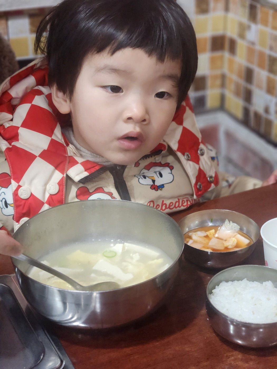 아내와 아이를 데리고 구석자리에 앉았다. 아이의 것은 따로 드릴 테니 두 사람 것만 주문해도 된다고 했다. 30개월 정도 된 사내아이라 나누어 먹어도 되는데, 마침 가족들이 다 배가 고픈 상태여서 정겨운 호의를 거절하지 않았다.
