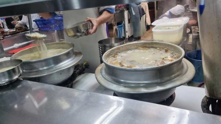 웨이팅이 많다고 들었는데 평일 10시 30분쯤 방문하니 절반 정도가 차있었다. 입구에서 이 집의 맛을 신뢰하게 되는 사람을 만났다. 회사원으로 보이는 한 사람이 급하게 뛰어가는데 마주 오던 사람이 어디 가냐 묻는다. "어제 너무 많이 마셔서 해장하러 가!!"