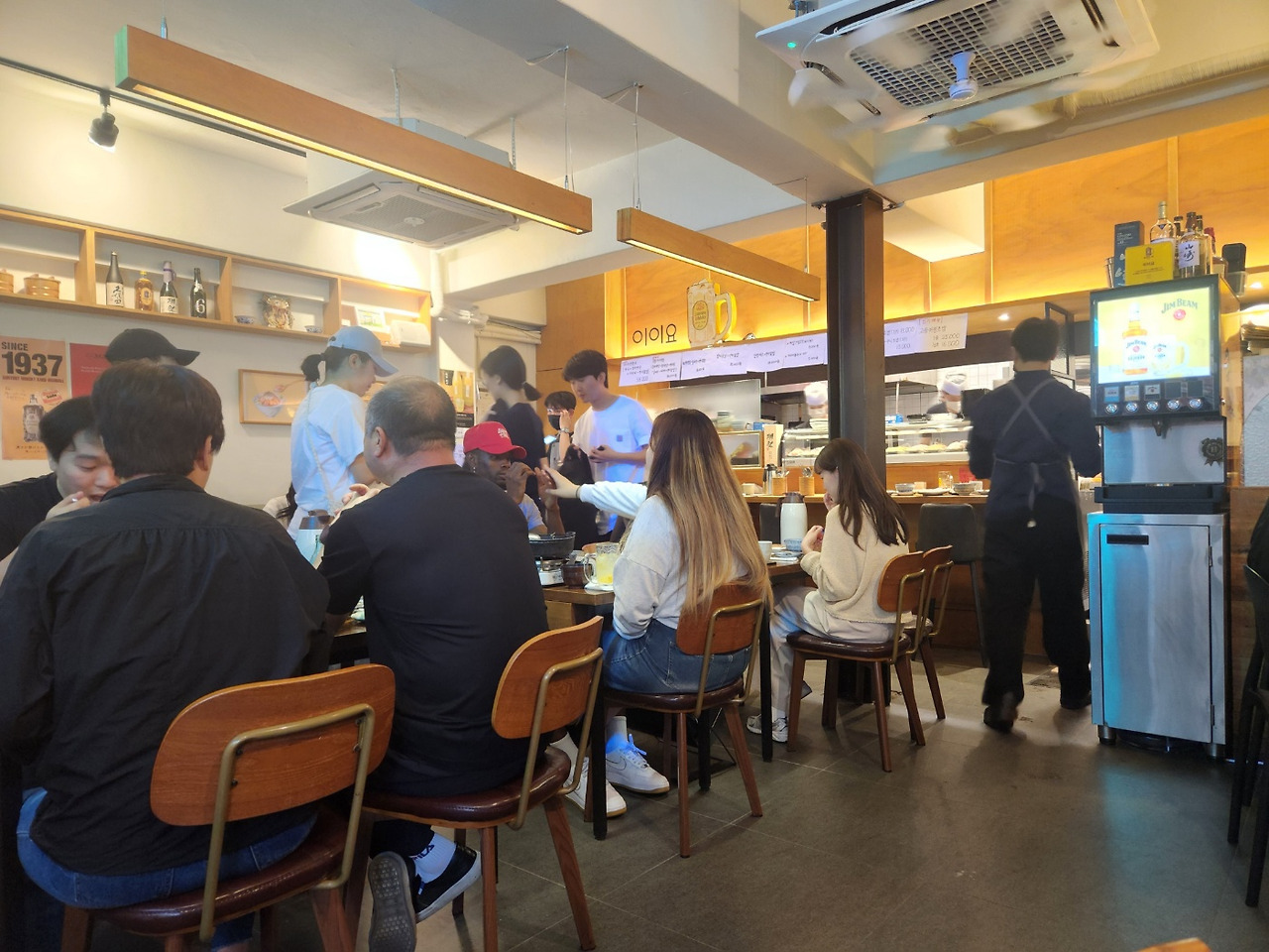 일본에서 많이 볼 수 있는 규동 체인점 중에 '요시노야'라는 곳이 있다. 주황색 간판에 초록색 글씨가 써져 있는. 주방 앞 닷지와 크지 않은 공간을 활용해 좌석을 배치한 모습이 비슷한 느낌을 주었다. 왠지 제대로 할 것 같은 집이다. 번잡스럽고 산만한 입구(대기공간)에 비해 정돈되고 깔끔한 실내다.
