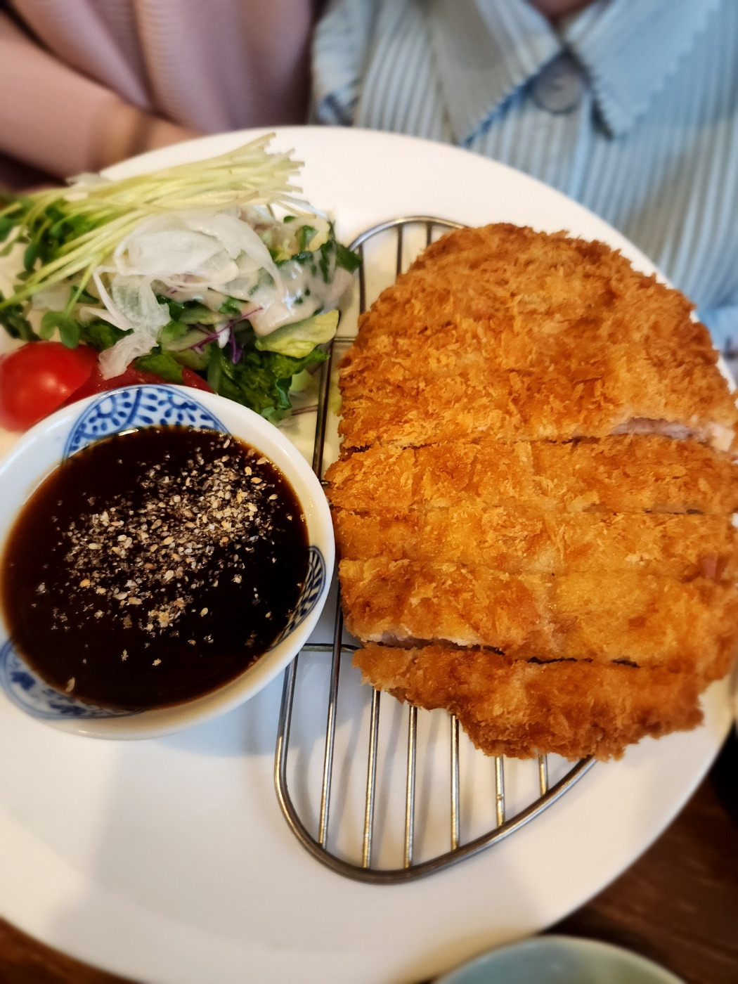 돈가스는 왜 메뉴판에 넣지 않은 걸까? 이렇게 잘 튀겨내면서. 두툼한 살코기에 얇은 튀김피. 소스가 공산품인 것 같아서 문어샐러드 소스에 찍어먹었더니 별미가 됐다.