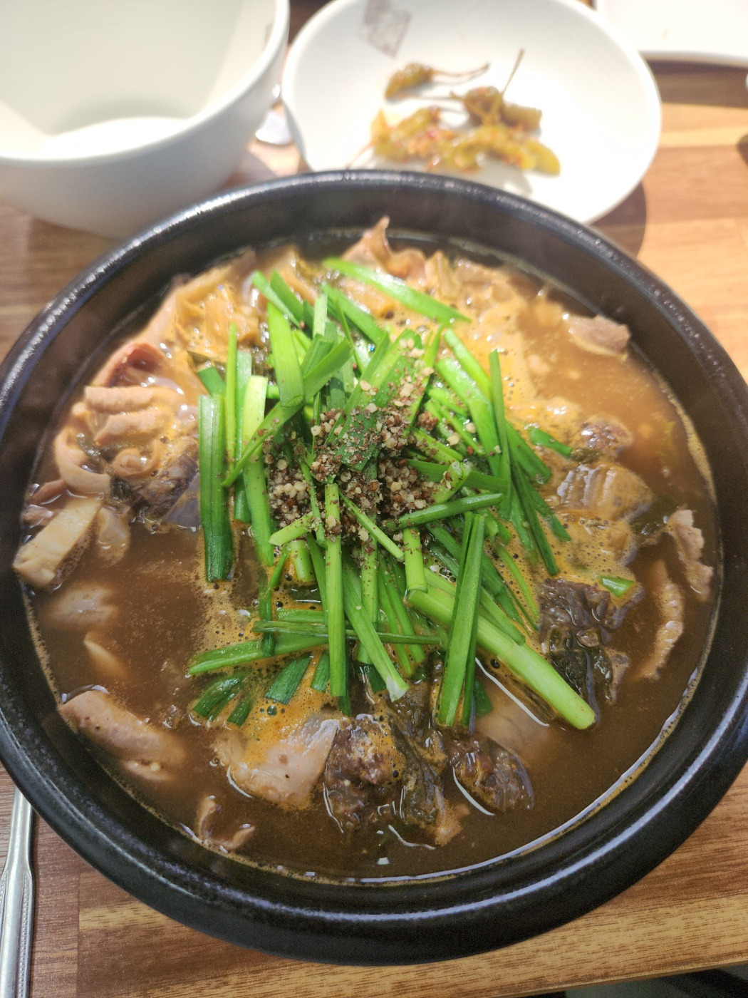 메뉴가 많은데 장순대국(특)을 주문했다. 나물순대가 궁금하긴 했으나 순대까지 따로 시키기엔 혼밥러에게 양이 너무 많다. 장순대국은 강원도식 막장을 넣은 국밥이다. 충청북도 충주 시장에 가면 순대국밥을 시래기 된장국 끓인 듯 만드는 데 그와 비슷하다. 무겁고 텁텁하지 않은 맑은 국물에 간이 세지 않게 장을 풀어 끓인다.