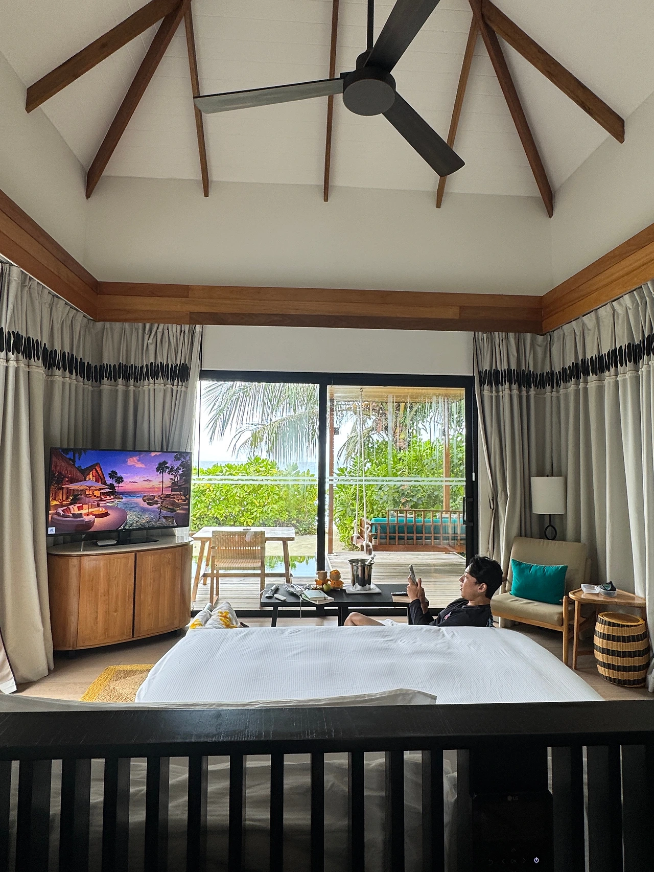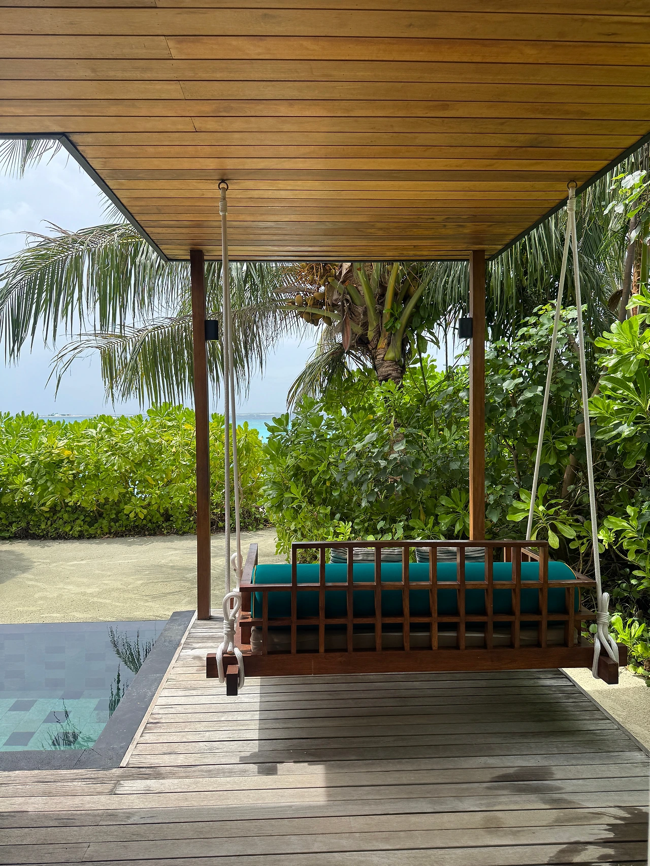 우리는 몰디브에 머무는 6박 동안 4박은 워터빌라에 2박은 비치빌라에 묵었다. 바다 위에 떠있는 워터빌라도 황홀했고, 큰 야자수들에 둘러싸여 있고 숙소 바로 앞이 고운 모래사장이 펼쳐진 해변인 비치빌라도 환상적이었다. 비가 종종 내려 파도가 세었던 날들이 더 많았어서 수심이 얕은 해변이 더 놀기 좋았다. 햇볕에 더워진 따스한 바다는 시원하기도 하고 부드럽기도 하다. 가만히 바다 위에 떠있으면 파도가 저절로 다가와 놀아주었다.