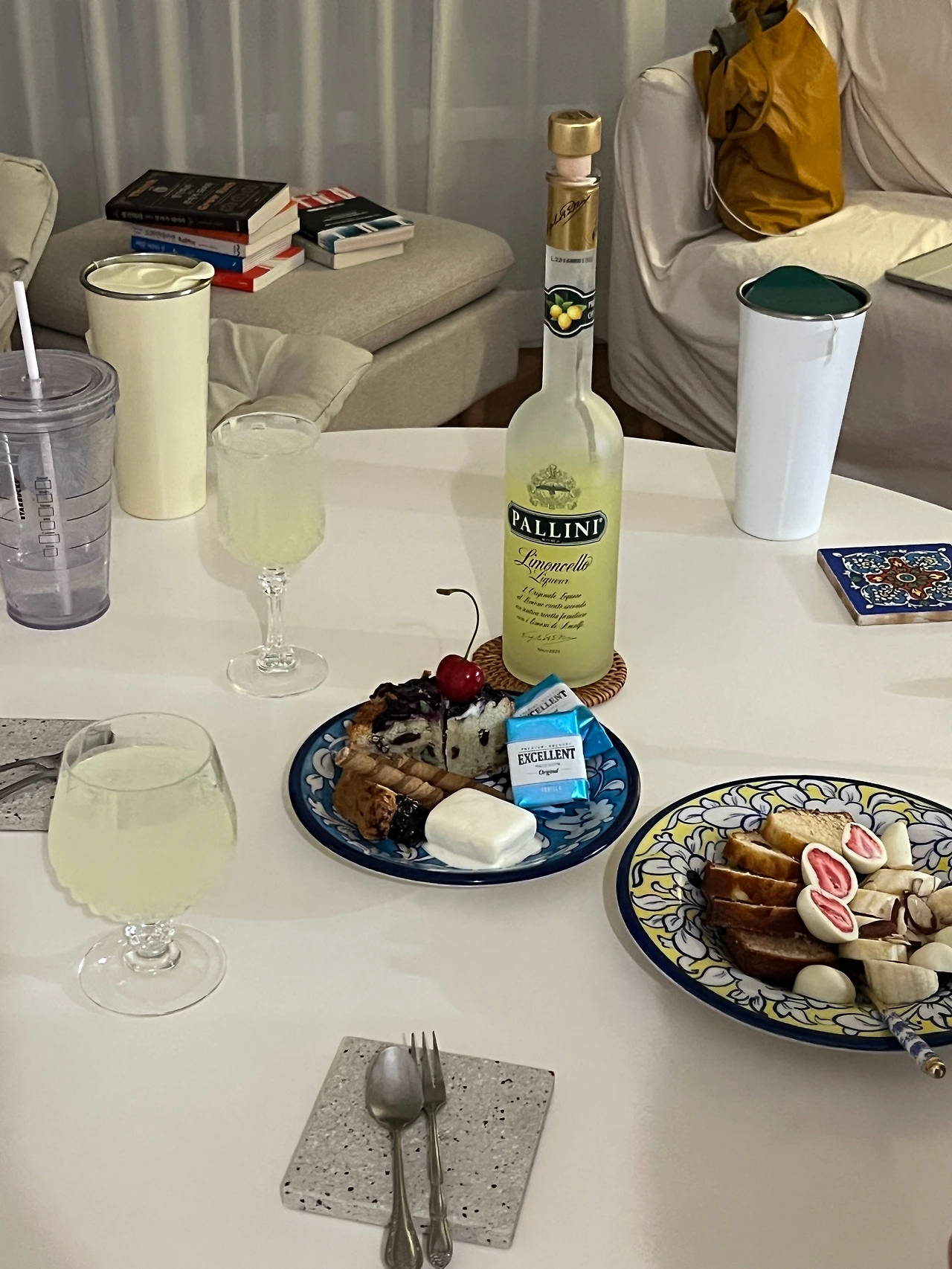 여자 2가 돌아오니 식탁이 다시 예뻐지기 시작했다. 이것은 여자 2의 행복이다. 우리는 그 행복을 옆에서 기분만 내면 되어서 즐겁다.
