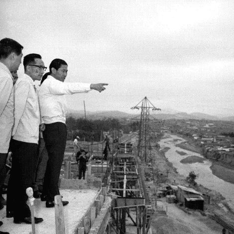 밤섬 제거를 위한 현장체크를 하고 있는 김현옥 시장