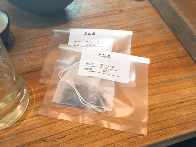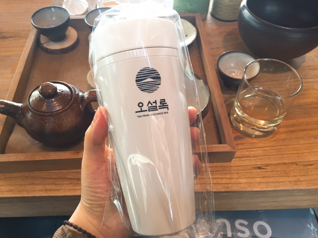 녹차를 마시다 보면 소믈리에분들께서 봉투를 하나씩 나누어주신다. 그 안에는 티 소분 봉투와 텀블러가 있는데 이걸 가지고 가는 재미가 꽤 쏠쏠하다. 이날 소분해 가지고 가는 오설록 차는 이 텀블러에 마셔봐야 할 것 같은 느낌. 수업이 끝난 후 티 뮤지엄과 이니스프리하우스를 둘러보며 필요한 소책자와 구입한 물건들을 담으니 딱이었다.