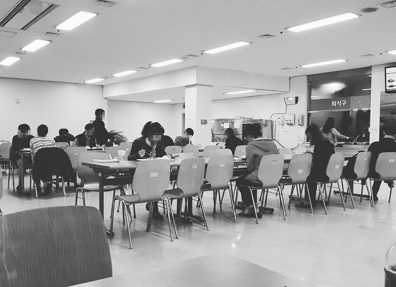 이곳에서는 거의 대부분의 사람들, 약 90퍼센트 정도가 혼밥을 한다. 평일 낮에 일터에 있지 않은 - 혹은 각자의 방식으로 일하는 - 이들과 함께 하는 것은 오로지 3,500원에 식판 가득 담을 수 있는 백반이다.