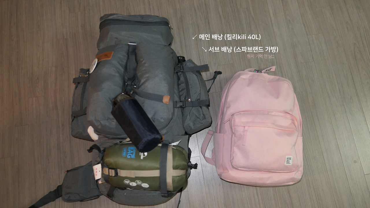 2. 서브 배낭 (스파브랜드...어디서 샀더라... 탑텐인가.. 암튼 지퍼가 조금 답답한 어떤 가방)
