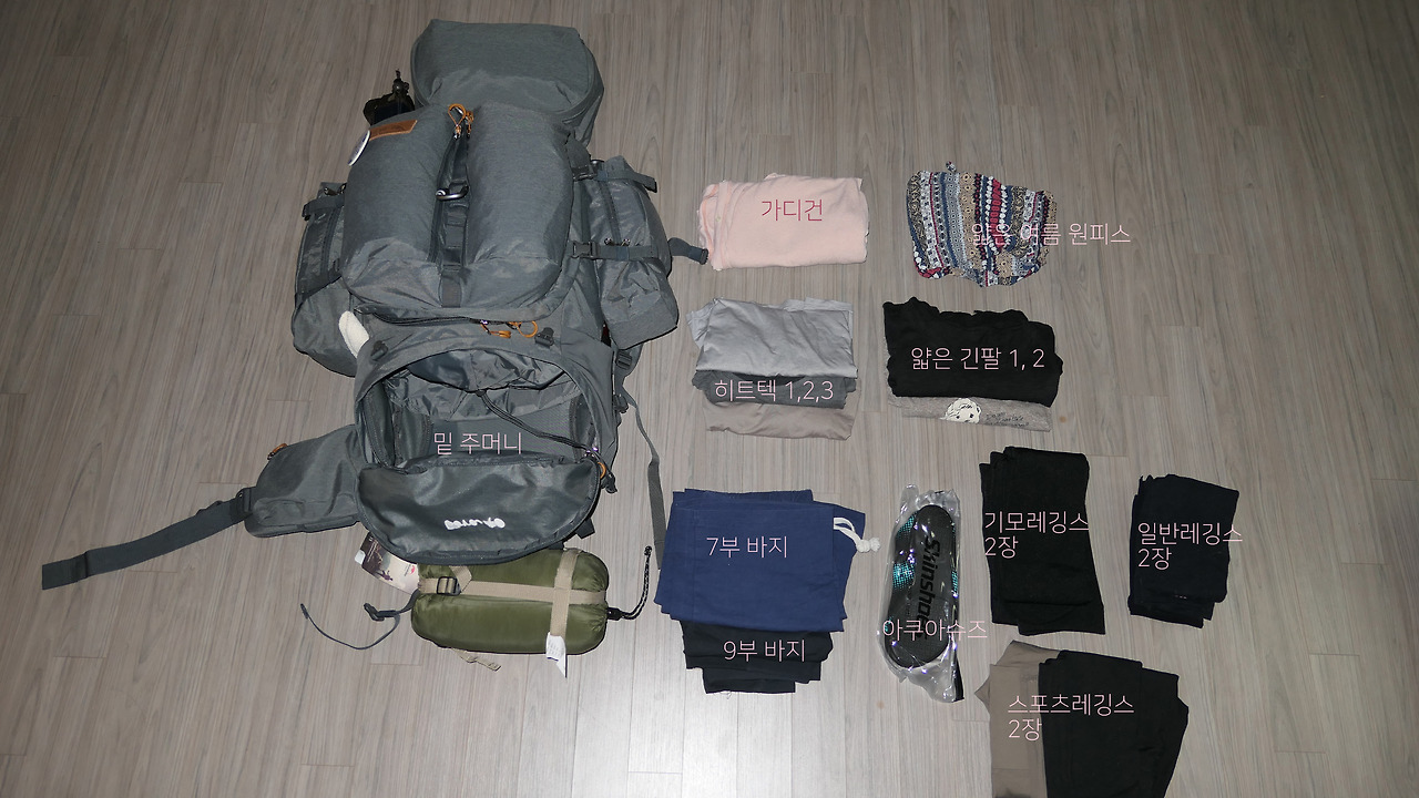 저건 시작할 때의 짐이고, 고정된 것은 아니다. 필요한 것이 생기면 사고 안 쓰는 것이 있으면 버리면서 다닐 것이다. 나는 앞으로 무엇을 더 비우고 무엇을 더 채우게 될까!