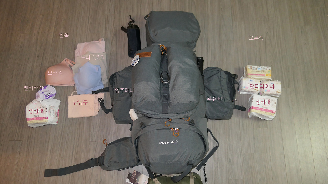 - 왼쪽: 브라 1,2,3,4, 난닝구, 팬티라이너, 생리대