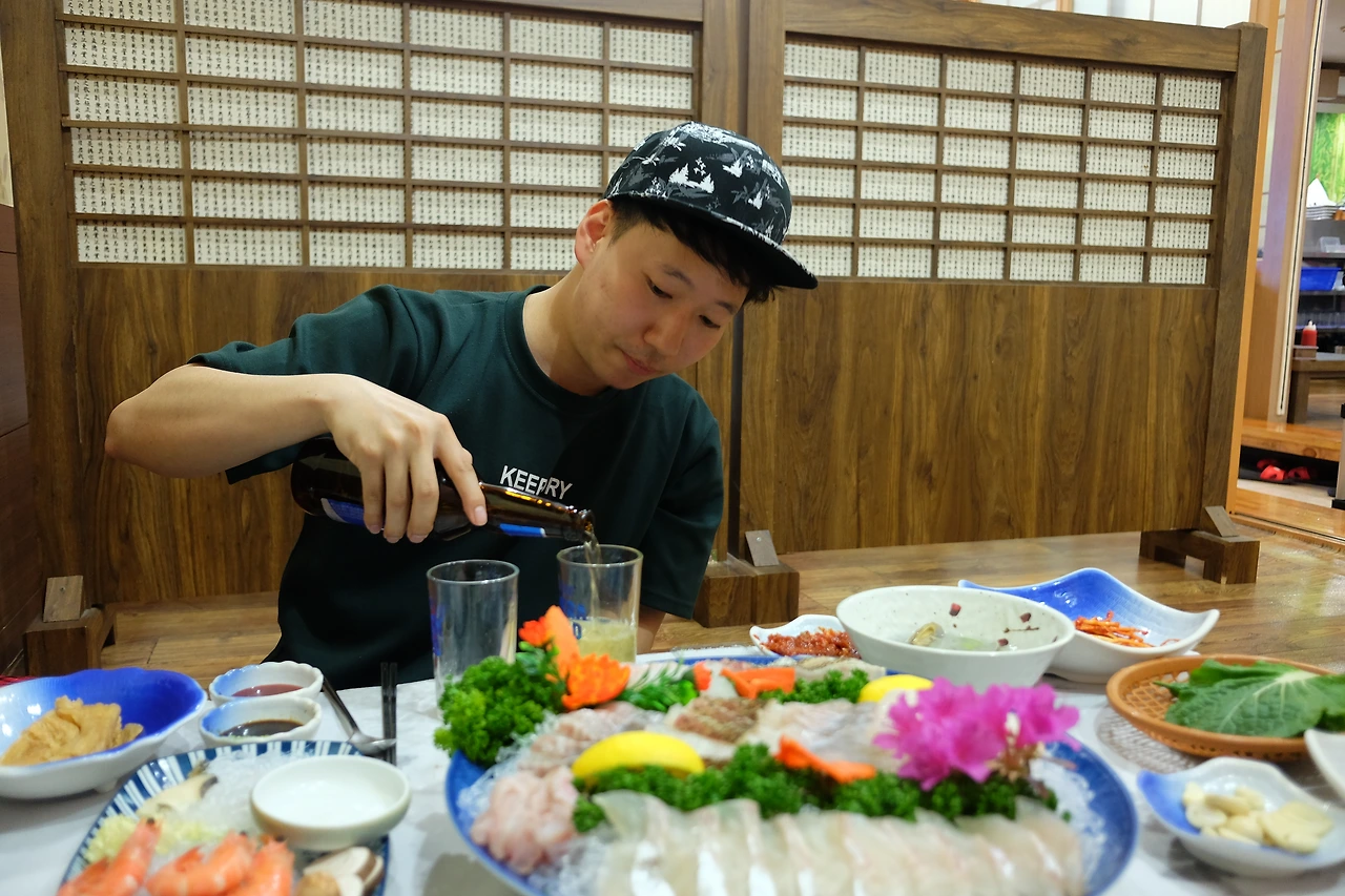 승표 씨는 엄청 좋은 회를 풀코스로 먹을 수 있게 해주셨다. 점심에 매운탕도 사주셨는데 저녁도 최고 좋은 걸로 사주신 거다. 바닷가에 왔으면 회를 먹어야하지 않겠냐며, 여수까지 왔는데 제일 좋은 회로 먹어야되지 않겠냐며, 여행자로서 꿈도 꿀 수 없었던 스케일의 최고급 회를 사주셨다. 안 그래도 오늘 하루종일 승표 씨가 운전해주시는 덕분에 정말 편하게 여행했는데 식사 까지 대접해주시니 몸둘 바를 모르게 감사했다.