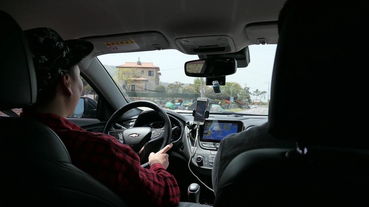 차도 함께 배에 실어 함께 섬으로 들어갔다. 시간이 한 시 반쯤 되니 다들 허기가 져서 남편이 챙겨온 뻥이요 한 봉지를 배 위에서 다 먹어버렸다. 섬에 도착하자마자 점심 먹을 곳부터 찾았다. 줄곧 음악을 틀고 주행을 하던 승표 씨의 차 안에 갑자기 통화연결음이 울려퍼졌다. 누군가에게 전화를 거는 것 같았다.