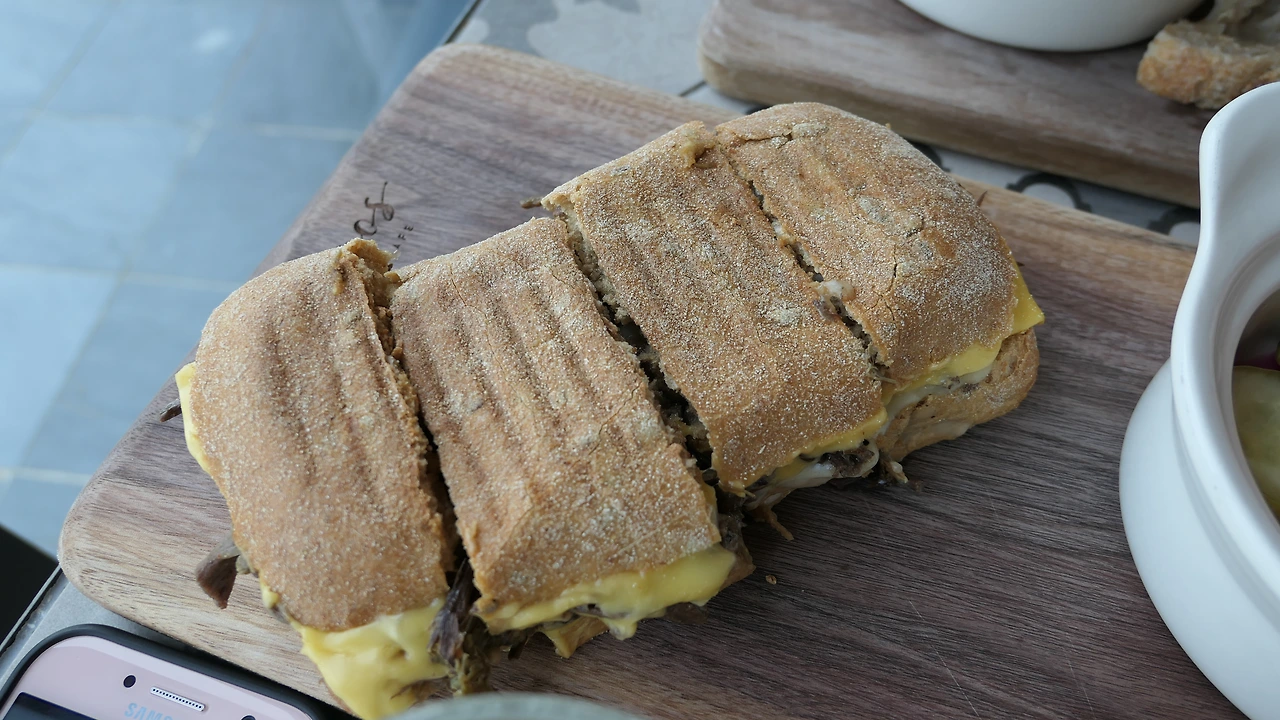 그때 와서 먹고 반했던 불고기고사리파니니는 여전히 최고였다. 고사리의 향이 참 독특하고 깊었다. 부모님과 형님도 맛있게 드셨다. 다 먹고 나서는 카페 앞 뜰에 나가 사진을 많이 찍었다. 이제 산굼부리로 이동하려고 차 앞에 갔는데 어머님께서 너무 행복해하시며 말씀하셨다.