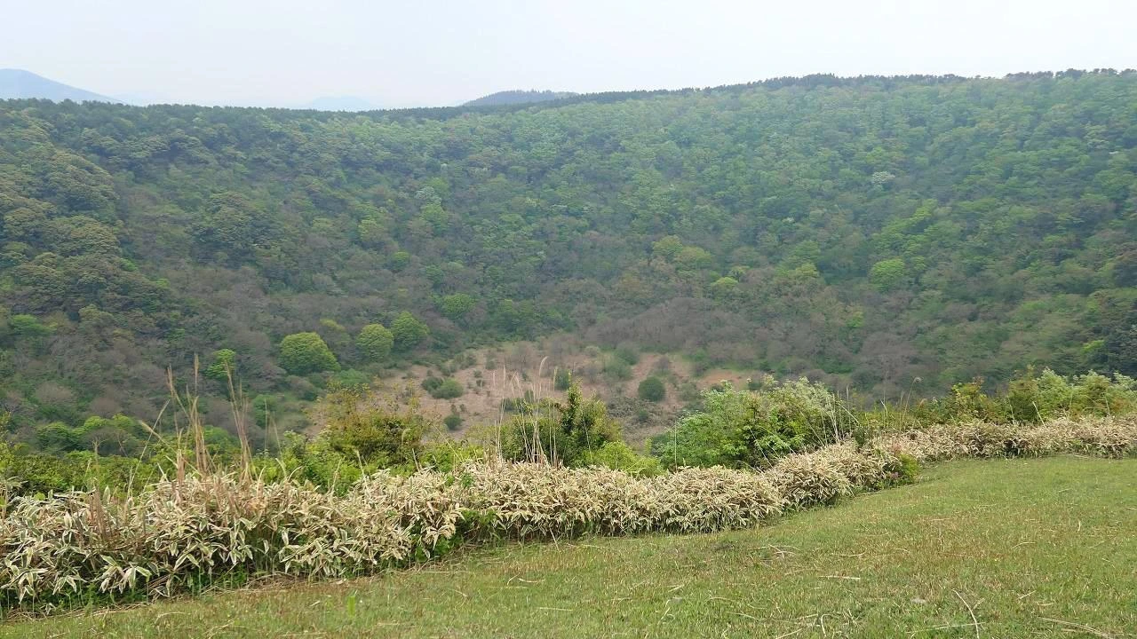 산굼부리는 지난 11월에 왔을 때의 모습과는 많이 달랐다. 무성했던 억새풀은 다 깎이고 없었다. 그 대신에 우리는 분화구 안쪽에 풍성한 나무들이 자라난 모습을 볼 수 있었다. 둥글게 안쪽으로 파인 분화구 내부에 다양한 나무들이 저마다의 모습으로 푸르름을 자랑하고 있는 것이 꼭 다른 세상 같았다.