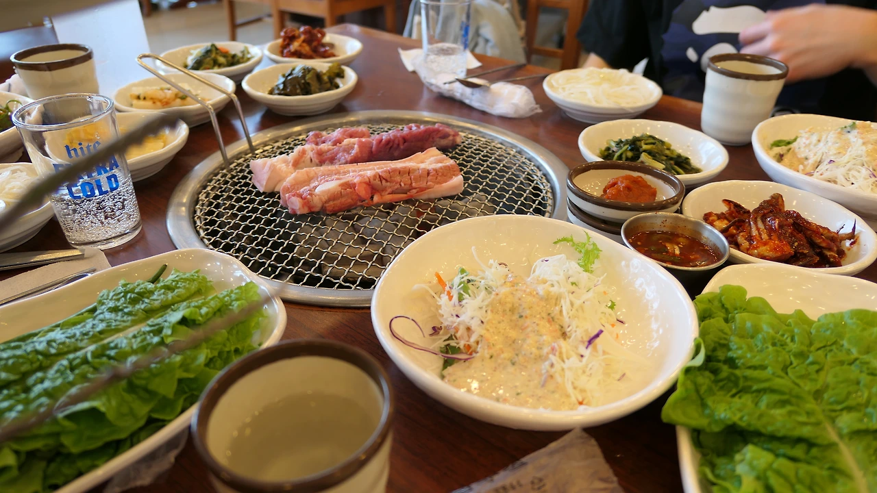 삽겹살과 목살을 시켰다. 고기 맛이 정말 좋았는데, 점심도 든든히 먹고 카페에서 빵도 먹은 데다가 이른 저녁 시간이라 더 많이 들어가지 않는 것이 아쉬웠다. 그래도 냉면까지 알차게 먹었다. 반찬으로 양념 게장이 나온 것이 인상적이었다.