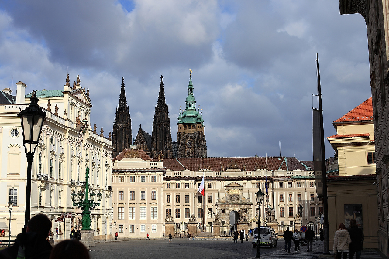 입구를 따라 걸었다. 1시간씩 위병대가 교대하는 3개의 입구, 3개의 정원으로 구성된 프라하 성. 제1정원에는 국빈을 맞이하는 장소, 제2정원에는 바로크 양식으로 만든 17세기의 코르 분수와 대통령 관저, 왕궁미술관 등이 있다. 제3정원에는 멀리서도 보이는 14세기 고딕 양식으로 만든 성 비투스 대성당이 있으며 성당 뒷편에는 황금소로가 있다. 프라하 성은 '작은 도시'라고 칭해질 만큼 규모가 컸다.