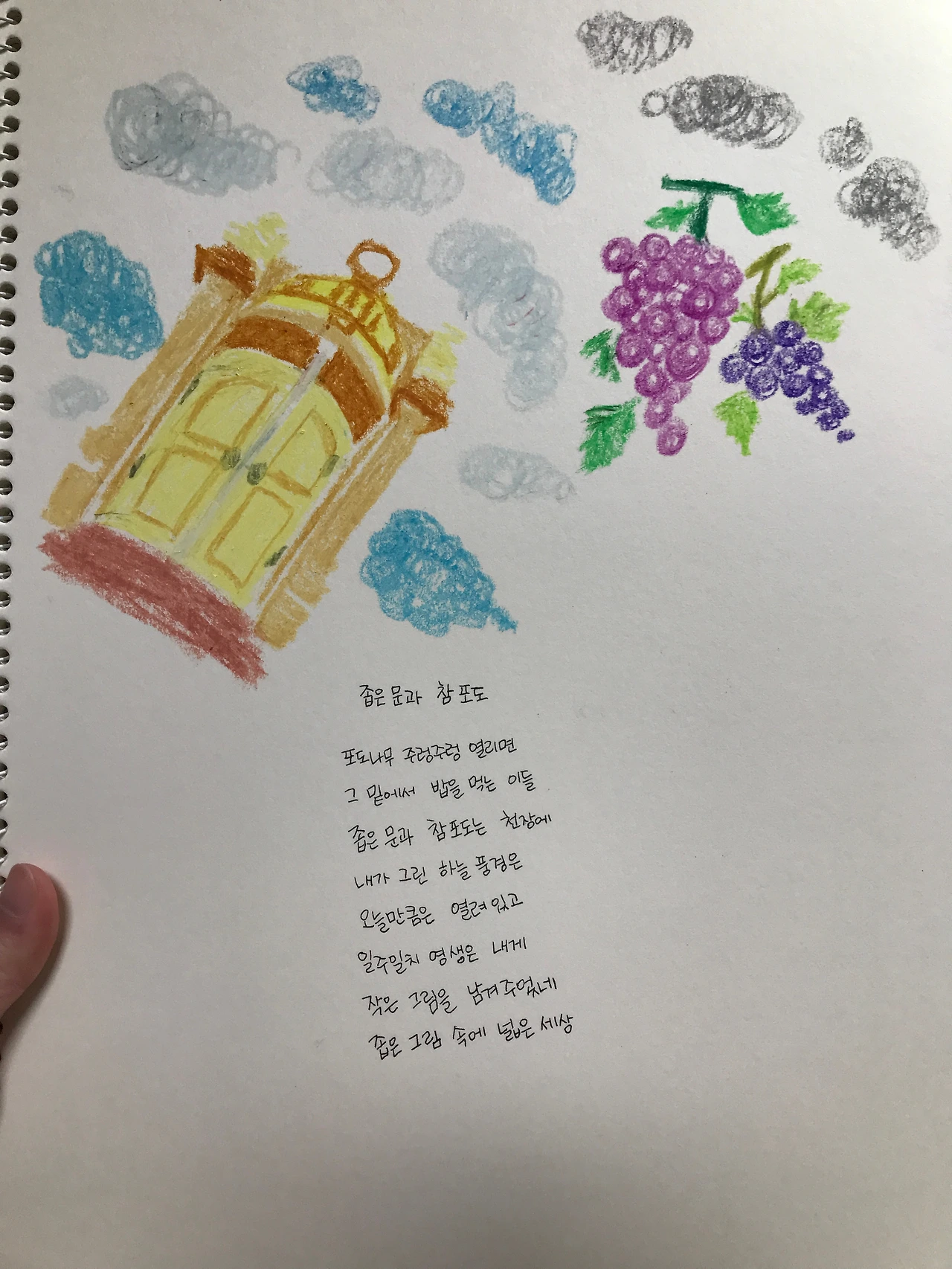열흘 전 꿈. 창문이 있는 주방 천장 위에 포도나무가 주렁주렁 달려 있었다. 어른 주먹 두 개 만한 하트 모양의 포도알은 창가에 놓여 있었고 나는 "포도알이 하트 모양이야!"라고 신기해 하면서 포도가 주렁주렁 열린 천장 아래서 누군가와 밥을 먹었다.
