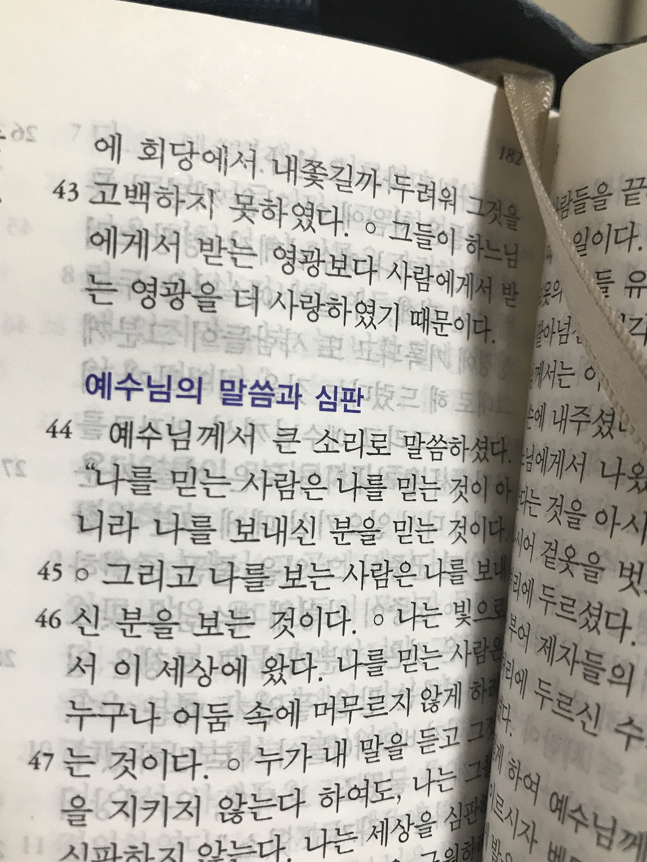 사람에게서 영광을 구하려고(우상이 되기 위해) 애쓰다가 일상을 잃어버린 나는, 처음부터 저주받았던 것일까? 하느님에게서 받는 영광은 일상을 평화롭게 살아가는 사람들, 죽음 인식을 안 하고 할 필요성도 못 느끼고 하루하루 노동으로 자신을 화하고 감사를 할 수 있는 그런 사람에게 만 찾아오는 것이 아닐까?