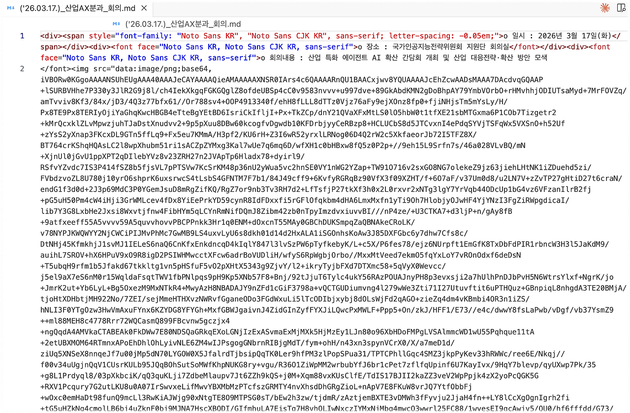 AI가 문맥을 이해하는 데 필수적인 헤더 태그(#), 볼드체(**), 인용구(>) 등의 구조적 마크업은 전무했습니다. 즉, 시스템적으로는 텍스트 파일(.txt)과 전혀 다를 바가 없었으며, 정부가 보도자료에서 강조했던 'AI 친화적 문서 작성 체계 혁신'이라는 기대 효과를 전혀 충족시킬 수 없는 로우 데이터(Raw Data)였습니다.