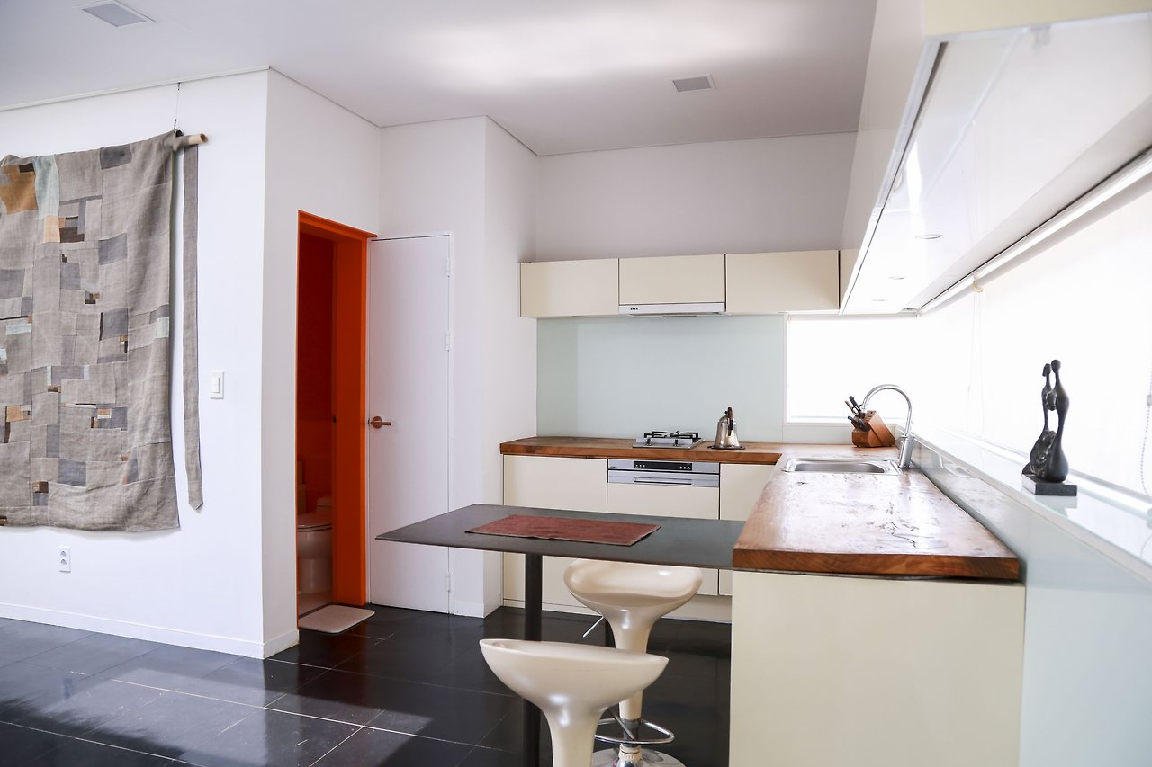 이만큼 건축은 중요한 일이기 때문에 저의 생각을 건축물에 어떻게 온전히 반영할 수 있을지 많은 고민을 했어요. 제 나름대로 이 공간에서 어떤 삶을 살 것인지 A4 용지 30장 분량으로 정리를 했죠. 하지만 건축은 구체적인 공학적인 지식과 디자인 지식이 가미되어야 해요. 건축 전문가가 필요했고, 어떤 전문가를 섭외할지 고심을 하다가 조민석 건축가를 만났습니다. 당시 해외에서 국내로 갓 들어온 상태였고 굉장히 유연한 사고를 하는 분이라고 생각했어요. 그분을 찾아가서 정리한 내용을 보여주며 새로운 공간에서 이런 삶을 살고 싶다고 프레젠테이션을 했죠. 그 긴 이야기를 듣고 나면 웬만한 건축가는 제 생각을 다 구현하기 어렵다며 거절했을 거예요. 조민석 건축가는 ‘도전적인 일이 될 것 같습니다’라고 하시더라고요. 수락한다는 의미였죠. 자금이 넉넉하지 않았음에도 적극적으로 의견을 받아들여주었고, 둘이서 1년 넘게 소통하면서 공간을 만들어냈어요. 건축가와 건축주의 상호존중 안에서 모든 과정이 조화롭게 이루어져서 지금도 고맙게 여기고 있어요.