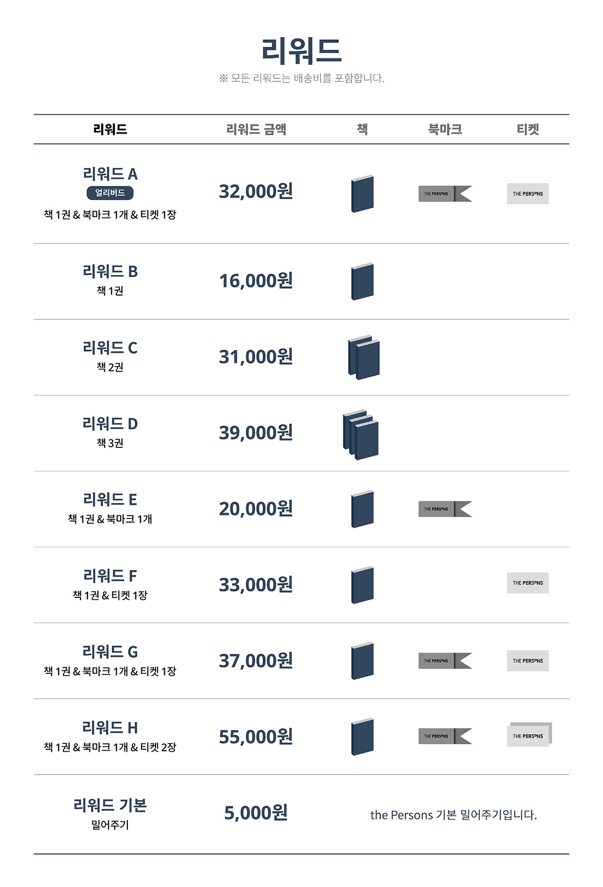 3. 리워드 가격은 배송비 포함입니다.(A, B, C 리워드 제외 모두 일반 택배 배송)