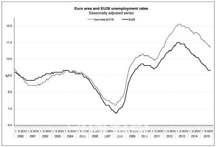 유로스타트(Eurostat)에서 발표한 자료에 따르면 유로존의 실업률은 10%를 상회하고 있다.