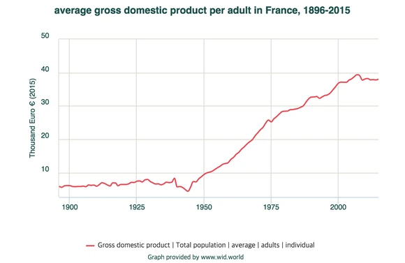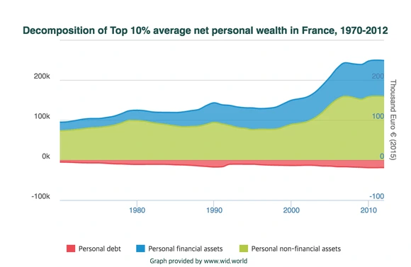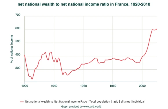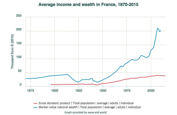 앞선 GDP 성장 그래프의 기울기를 기억하는가. 부의 성장 추세에 비하면 완만하게 보일 정도이니 프랑스의 국가 전체 자산이 얼마나 급격하게 늘어났는지 살펴볼 수 있다.