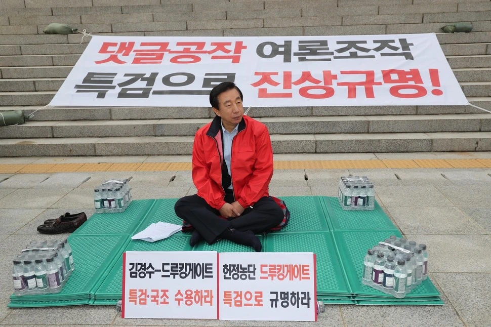 "전 이시간부터 야당을 대표해서 조건없는 특검 관철 놓고 무기한 노숙 단식투쟁에 돌입하겠습니다. 더이상 민주당의 몽니와 뭉개기를 이대로 방치할 수 없습니다."