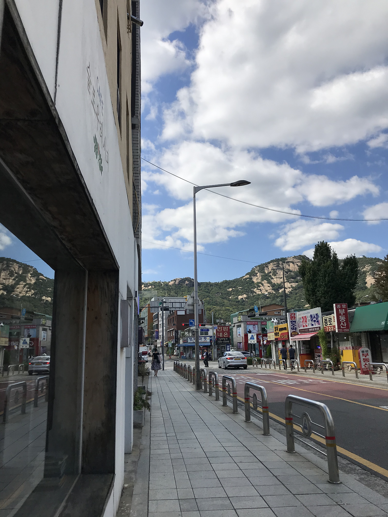 다시 걷기 시작했습니다. 그리고, 서울 한복판에서 인왕산이 올려 보이는 거리에서 한참을 서서 바라보았습니다. 구름은 느릿느릿 움직이고 바람은 상쾌하고 기분은 한결 나아졌습니다. 고등학교 때 걷던 이 거리가 완전히 다르게 인식되는 순간입니다. 아 이곳이 이렇게 좋았나 새삼 드는 생각입니다. 인왕산의 모습이 변형되거나 거리의 풍경이 완전히 바뀐 것도 아닌데 말이죠.