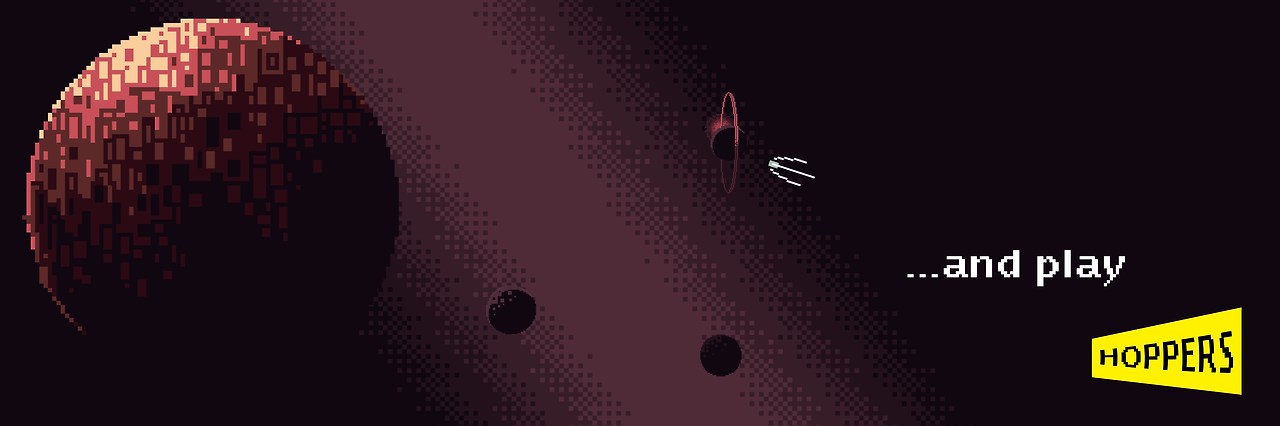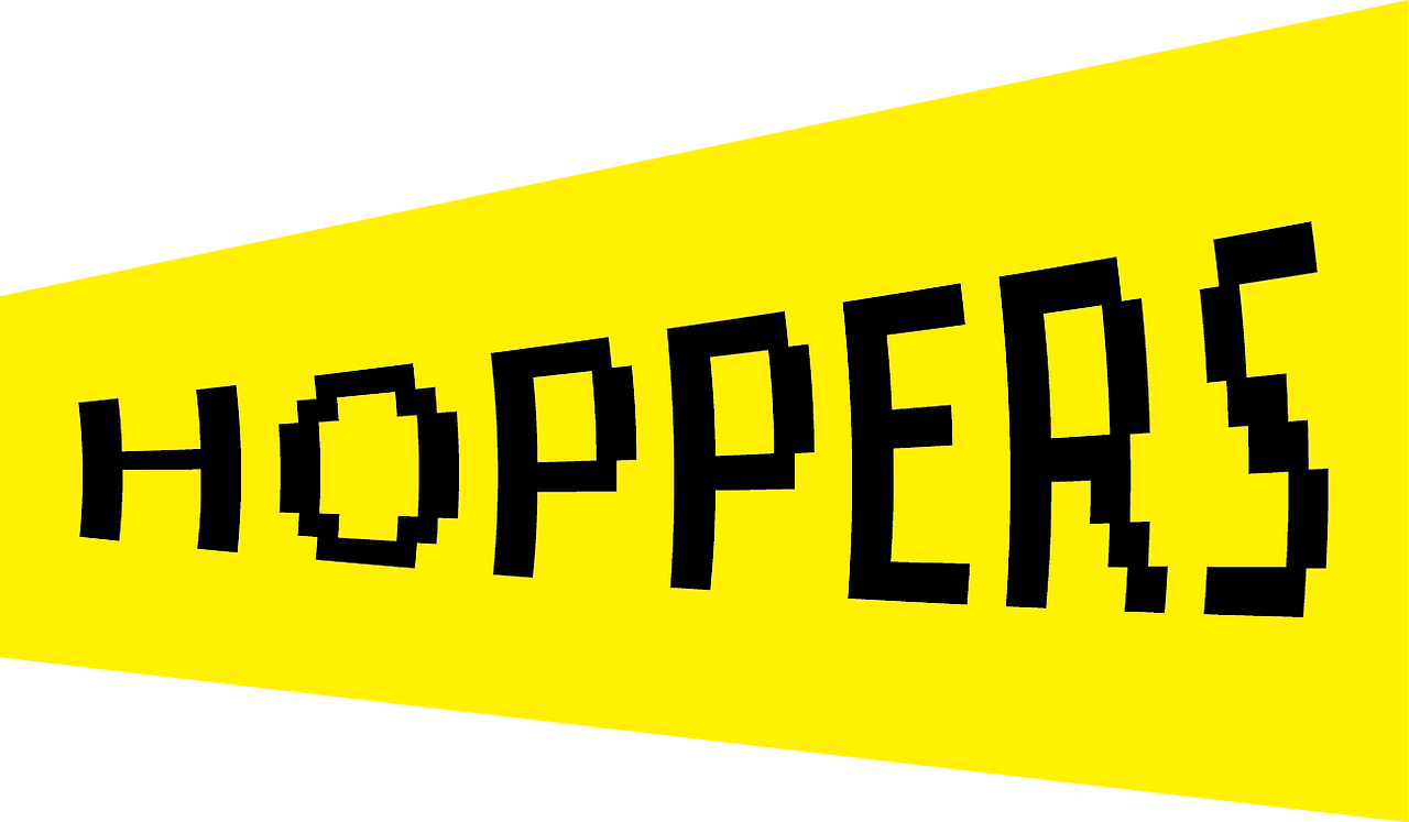우측 하단의 PI LOGO. 시선의 흐름이 느껴지는 사다리꼴 구도를 채용하고, 20세기부터 21세기까지 쭉 이어져온 나의 게임에 대한 세기를 뛰어넘어온 여행자라는 의미로 'HOPPERS' (Hop through 하는 사람)라고 명명했다.