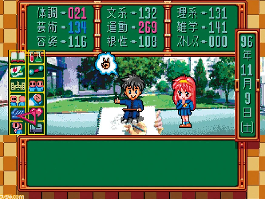이런 게임 디자인 성향은 일본의 다른 장르 게임에서도 종종 드러납니다. RPG(역할 수행 게임)이지만, 정량화된 동료와의 관계치 형성을 위한 커뮤니티 활동이 중심이 되는 <페르소나> 시리즈를 거론할 수도 있습니다. 이외에도 일본이 만든 게임 장르인 연애 시뮬레이션 게임 장르의 대표작 <도키메키 메모리얼> 시리즈에서도 수치화되어 정량화한 '나'와 '동료'간의 관계 치를 통해 게임 속 '나의 입지'를 넓혀가는 선형적 디자인을 찾아볼 수 있습니다.