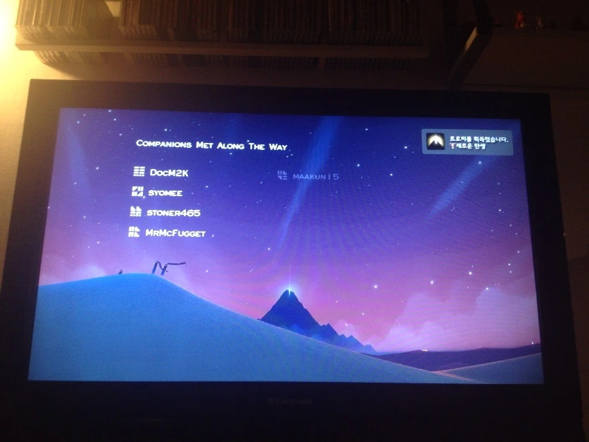 고독하다고 생각했던 여행 중 저를 중간 도와주던 NPC(데이터에 의한 가상의 움직이지 못하는 캐릭터)라 치부했던 게임 내의 여행자들이 전 세계 어딘가에서 이 게임에 접속해서 저처럼 고독하게 여행하던 플레이어였기 때문입니다.