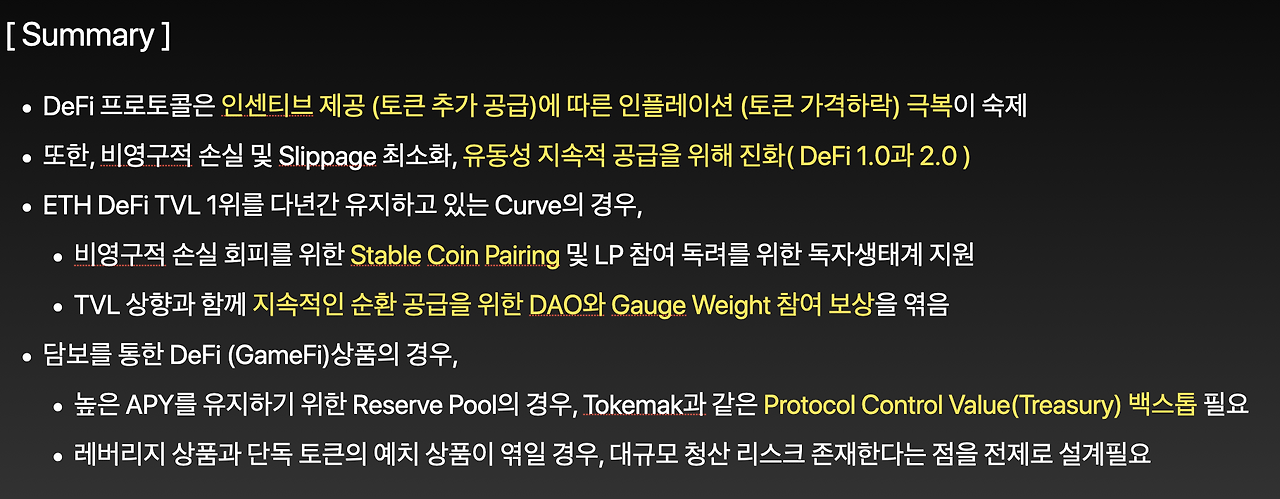 그래서, 나는 누누이 레버리지 담보 상품과 청산 리스크가 존재하기 때문에 백스톱을 고려한 장치가 있어야 한다고 DeFi와 관련된 이야기를 할 때마다 얘기해왔다. 물론 유동성 풀을 소유하며 비영구적 손실을 최소화하려는 DeFi 2.0 스킴이 성공한 것은 아니고 계속해서 혁신되어 왔고, 위험을 줄이고 유동성 공급의 순환을 위한 Reactor모델과 프로토콜이 컨트롤 가능한 곳간(Treasury)을 만드는 프로토콜도 진화해왔다. 정답은 없고 위험을 줄이기 위한 장치를 마련하고 발전시켜온 것이다. 왜냐하면 누군가의 소중한 돈이 기 때문이다.